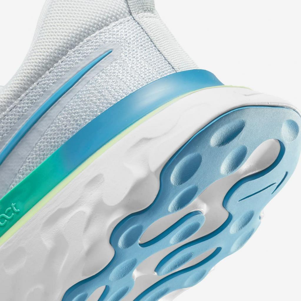 Nike React er et let og slidstærkt skum, der giver en flydende og responsiv fornemmelse. Det gængesålsformede skum giver støtte til de tre faser af løberens skridt. Den giver fleksibilitet, når du løfter din fod, et jævnt løb, når din fod bevæger sig fremad, og stødabsorbering ved kontakt med jorden.