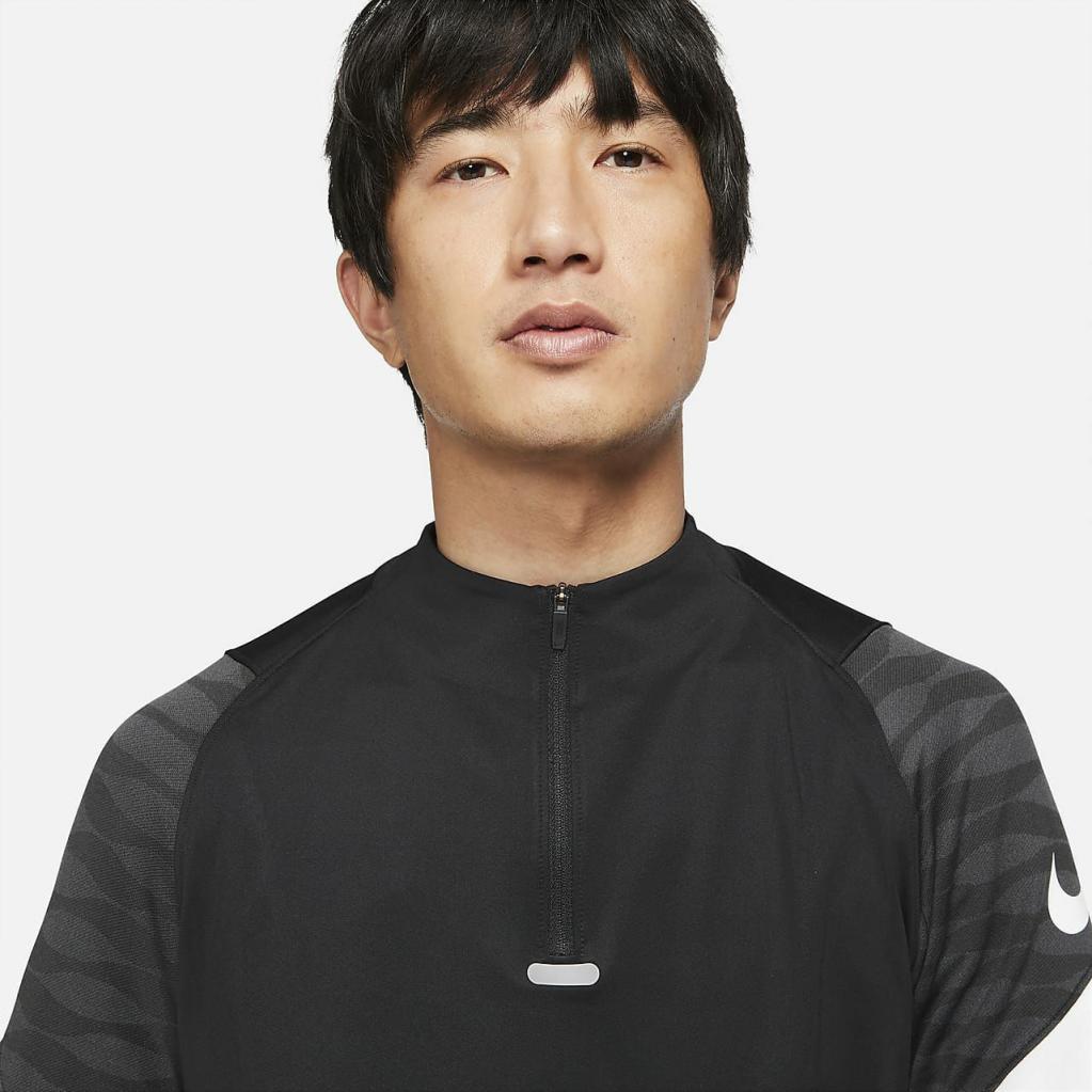 Nike Dri-FIT Strike-træningstrøjen er fremstillet i strækbart, svedtransporterende materiale, der holder dig komfortabel og tør, når du træner dine færdigheder. Designet med 1/4 lynlås har en strømlinet pasform med skjulte huller til tommelfingrene, der hjælper med at reducere distraktioner.