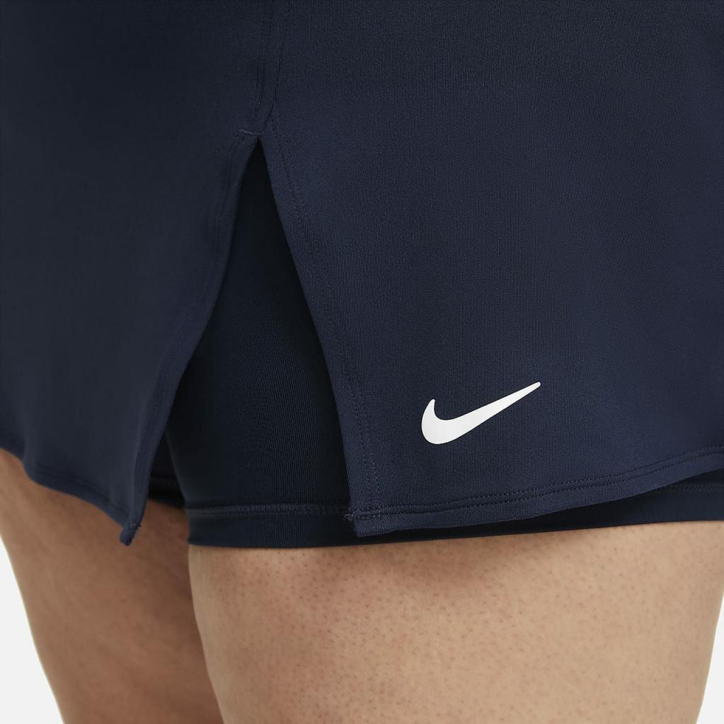 NikeCourt Victory-nederdelen er blød og elastisk og giver dig den komfort, du behøver for at yde dit bedste. En slids i siden giver dig ekstra plads til at bevæge dig, mens du løber og glider, og giver samtidig nem adgang til de tennisbolde, du kan opbevare under de indvendige shorts.