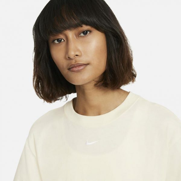 Nike Sportswear Essential-kjolen føles som din yndlings-T-shirt, men har en chik opdatering. Den løstsiddende pasform er behagelig og perfekt til lag-på-lag.Den er desuden fremstillet med mindst 75 % økologisk bomuld.