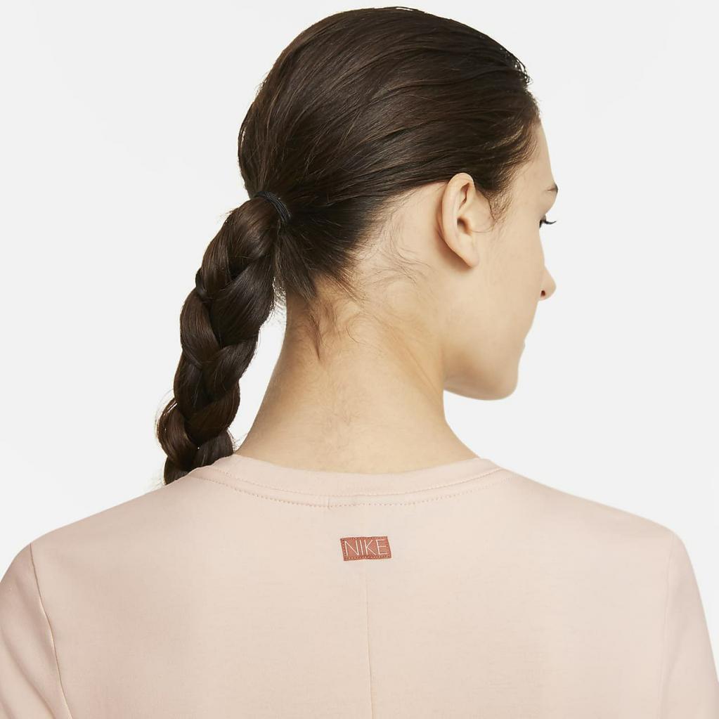 Det broderede Nike-logo på brystet nikker til looket fra 80’ernes fitnessclub-logoer.