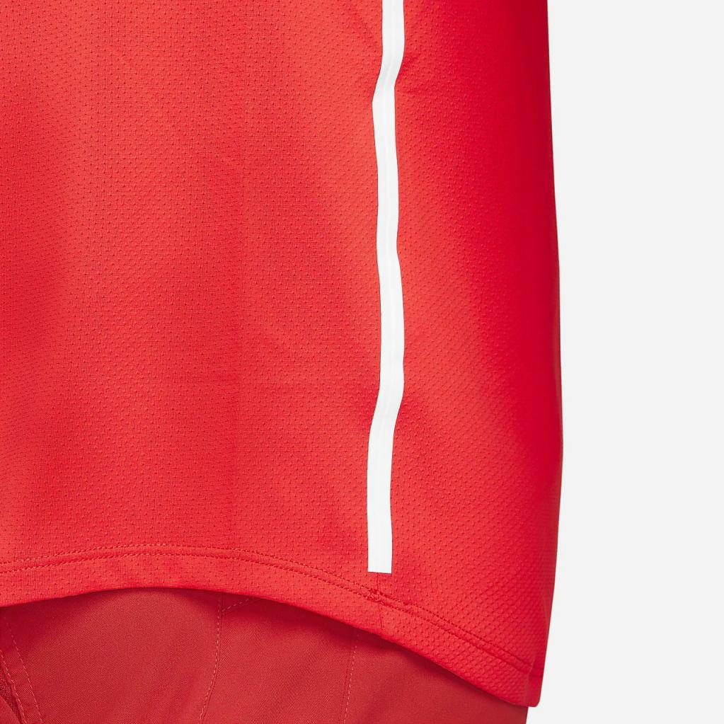 Nike Dri-FIT-teknologi transporterer sved væk fra din hud, hvor det hurtigt fordamper, så du kan holde dig tør og veltilpas. Vi brugte kortlægning af kropsvarme og sved til at afgøre, hvor du har brug for mere åndbarhed og strækbarhed, og inkorporerede zonerne i materiale fremstillet i 100% genanvendte polyesterfibre.