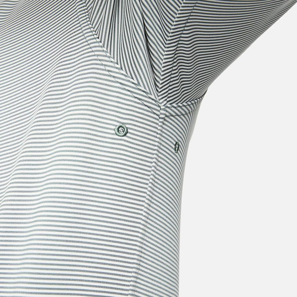 Afrundede knapper og Chambray-kanter på knaplukning, nakke og ventilation i siderne tilføjer en sofistikeret finish.