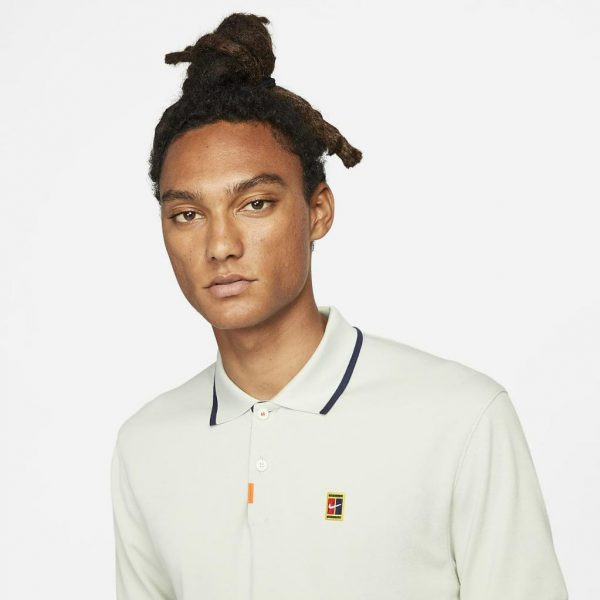 Et orange mærke på stolpelukningen, orange tråd på den øverste knap og et nøjagtigt tryk af den originale Nike-skotøjsæske under kraven bagpå tilfører klassisk stil til dit look.