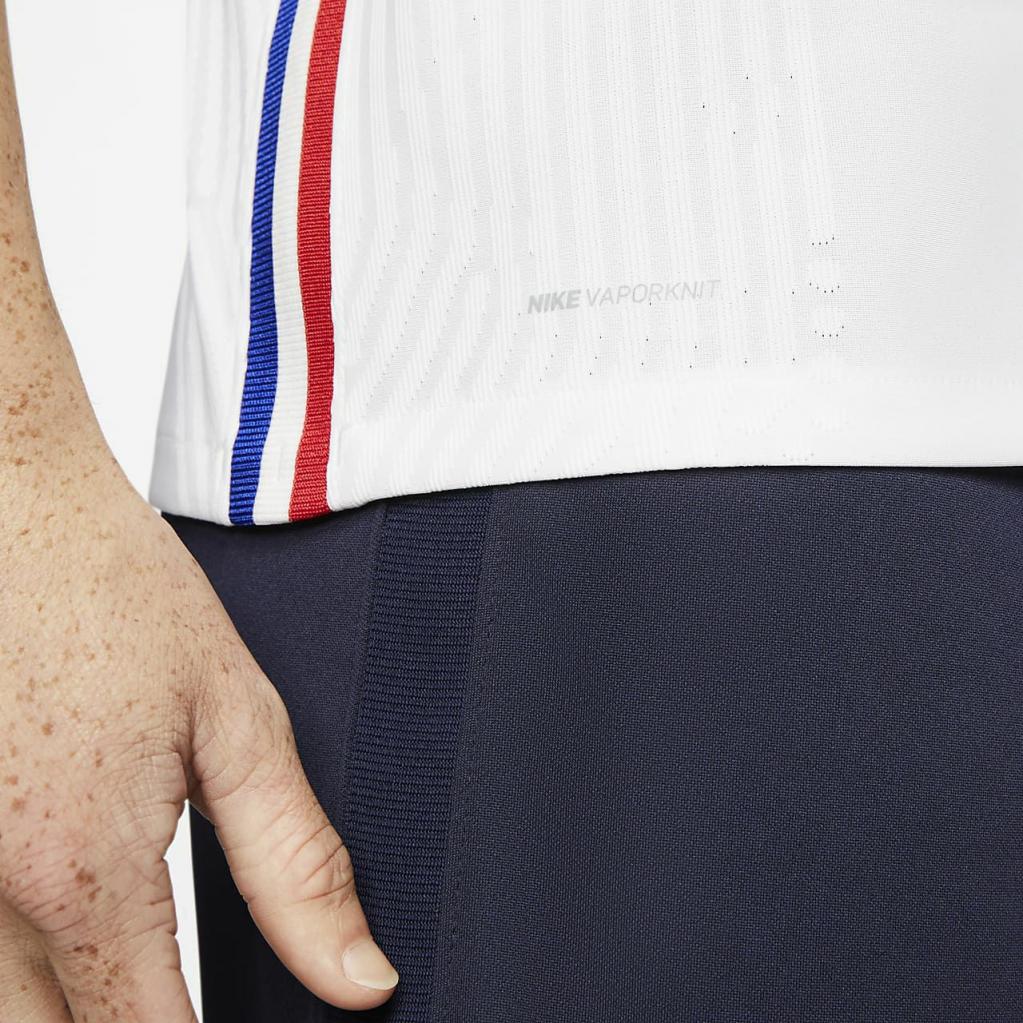 Den hvide farve, der kanaliserer banen og streetwear, forener holdet og landet som ét hold. Kanten fremhæver den franske stolthed, mens mottoet "frihed, lighed, broderskab" er skjult indvendigt i nakken.