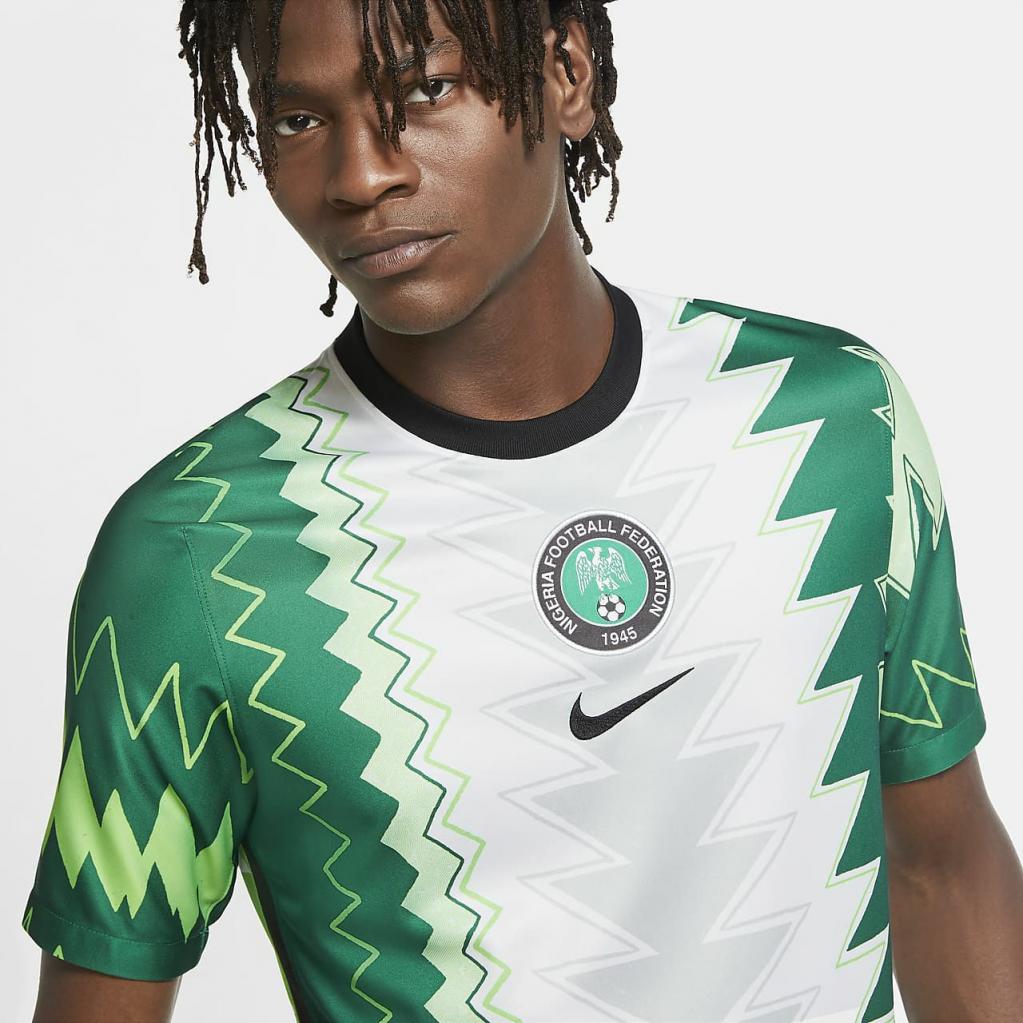 Repræsentér dit hold i Nigeria Stadium Home-trøjen. Særdeles åndbart materiale transporterer sved væk fra huden og hjælper dig med at holde dig kølig, når du hepper fra tribunen eller spiller på banen. Dette produkt er fremstillet med 100% genbrugt polyestermateriale.