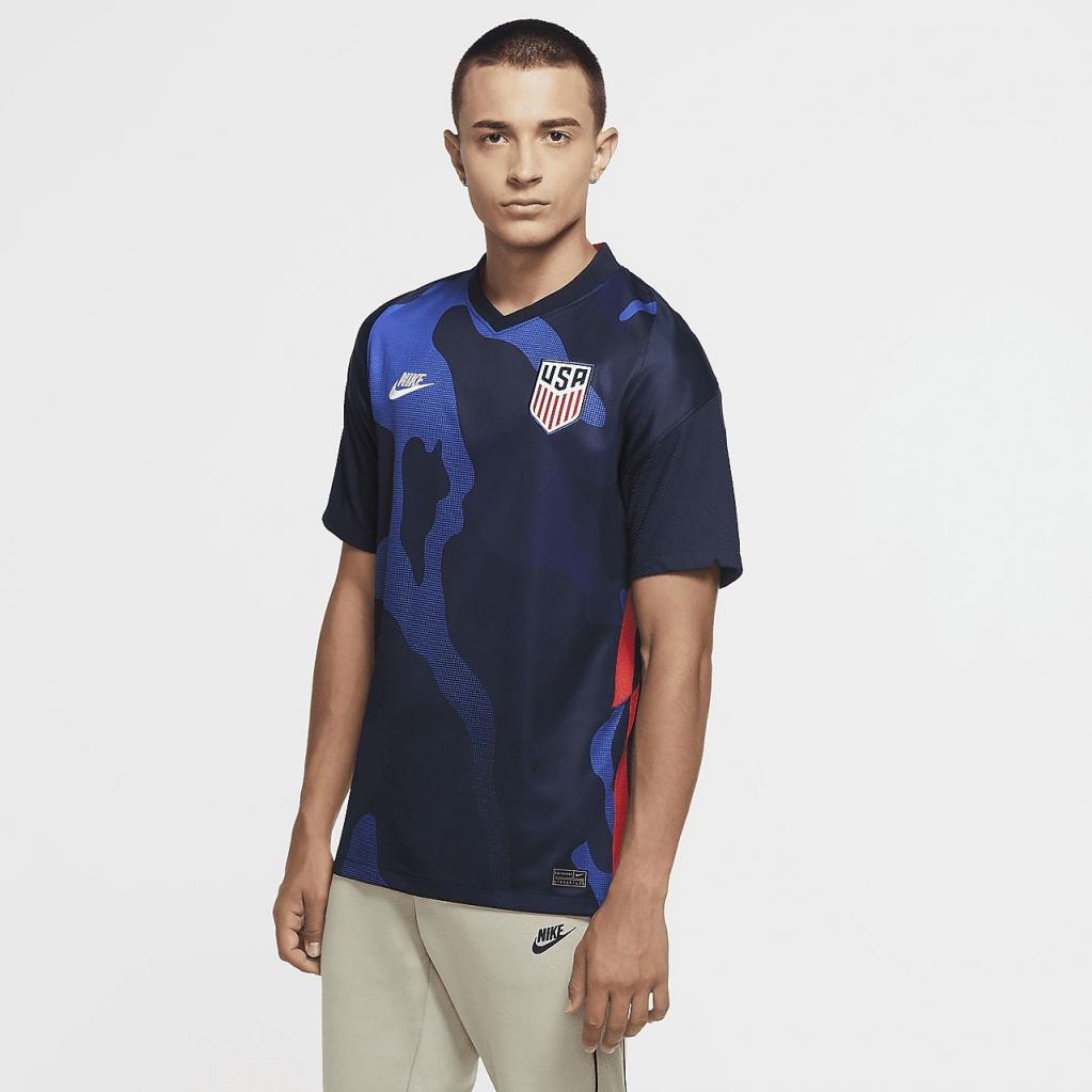U.S. Stadium Away-trøjen viser din stolthed, så alle kan se den. Særdeles åndbart materiale hjælper med at fjerne sved fra huden, så du kan holde dig kølig og godt tilpas på banen eller tribunen. Camouflagemønsteret er inspireret af den globale indflydelse, USA har på sport og bringer både streetwear og modekultur til banen. Dette produkt er fremstillet af 100% genbrugte polyesterfibre.