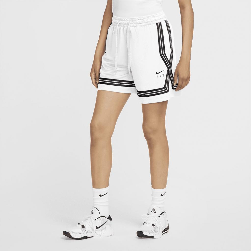 Ikke noget med at rulle linningen op eller ned for at få den rette længde. Nike Dri FIT Swoosh Fly-basketballshortsene er designet til at sidde til i taljen, så de ikke glider ned. De har et bredere snit over hofterne og lårene med en længde, der går til over knæet. De er ikke for stramme eller for lange, men bare helt perfekte til at spille i.