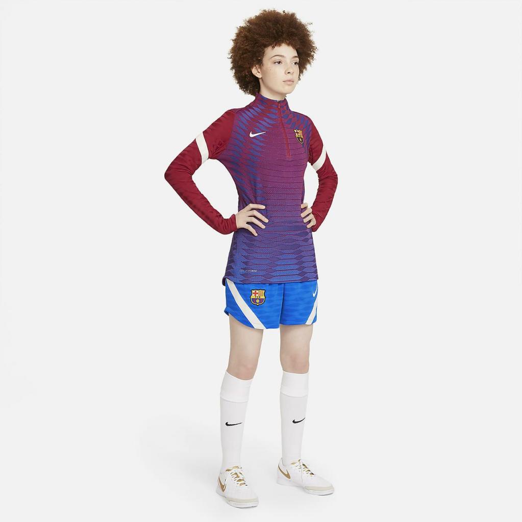 FC Barcelona Strike-shortsene har designdetaljer, der er skræddersyet til fodboldens kommende stjerner. En afslappet, let pasform fungerer sammen med svedtransporterende materiale, der holder dig afkølet og fokuseret, mens du finjusterer dine færdigheder.