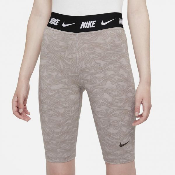 Nike Sportswear-shortsene opdaterer cykelshortsene med svedtransporterende materiale og et heldækkende Swoosh-print, hvilket gør dem til et nemt valg til hverdagsbrug.