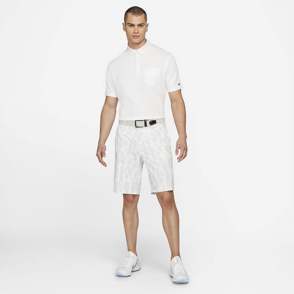 Gentaget "Nike Golf"-grafik på indersiden af linningen har en let klæbende tekstur, der hjælper med at fastholde trøjen nede i bukserne.