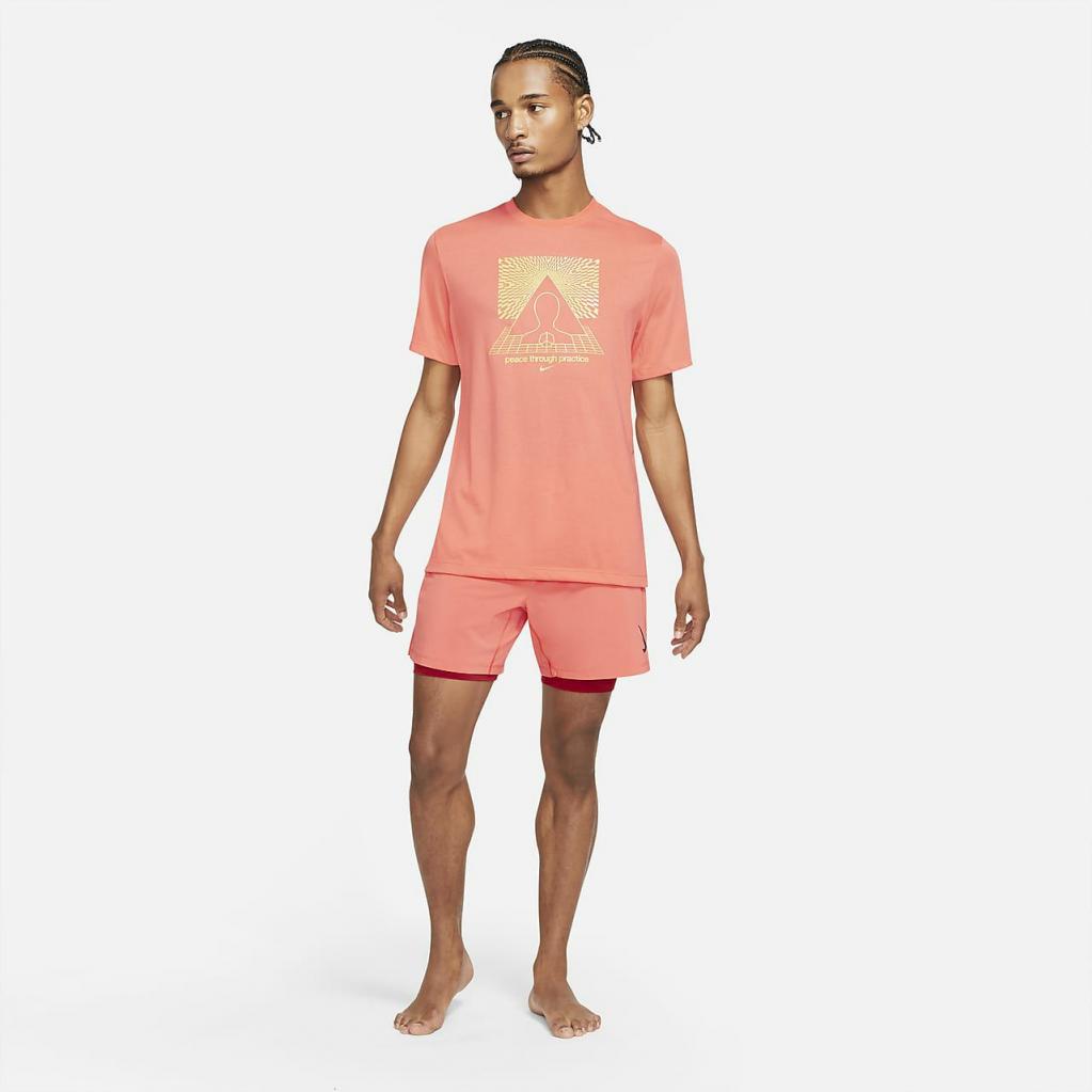Det strækbare ydre lag med Dri-FIT-teknologi holder dig tør og godt tilpas og giver bevægelsesfrihed fra første til sidste stilling. Slidser i kanten giver bevægelsesfrihed under dit flow.