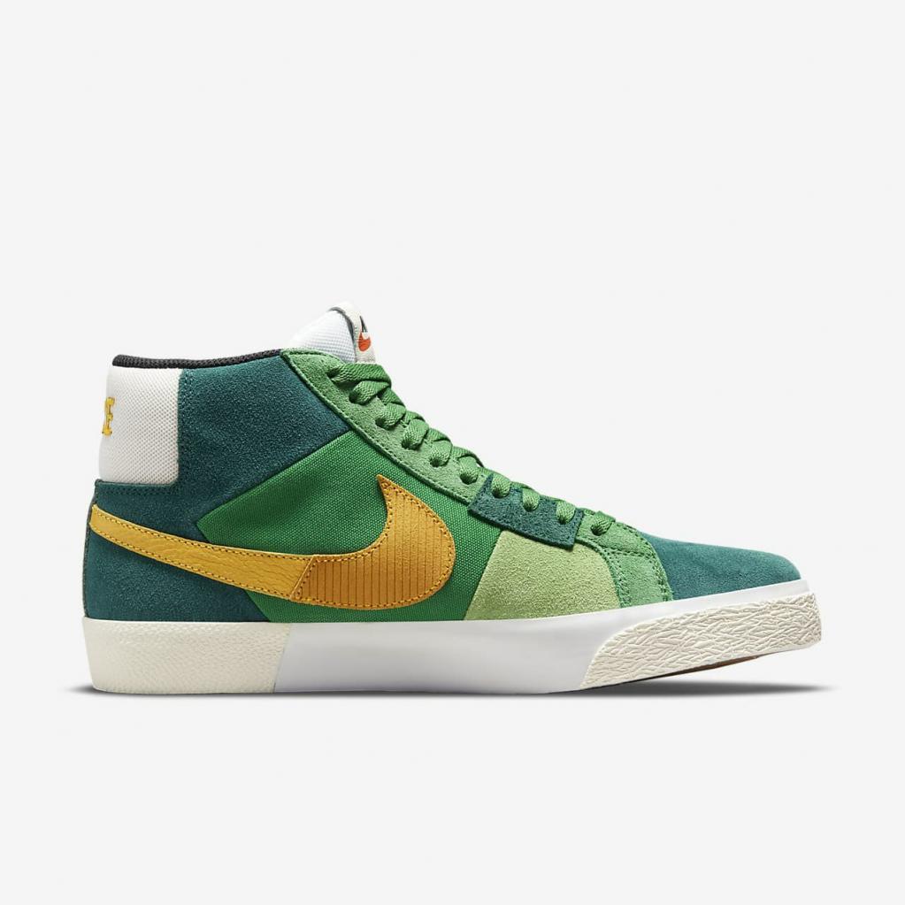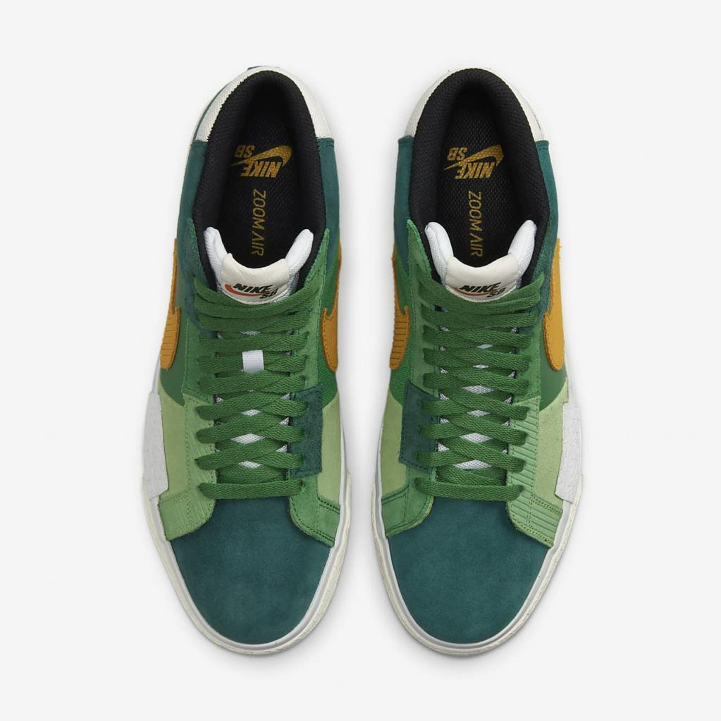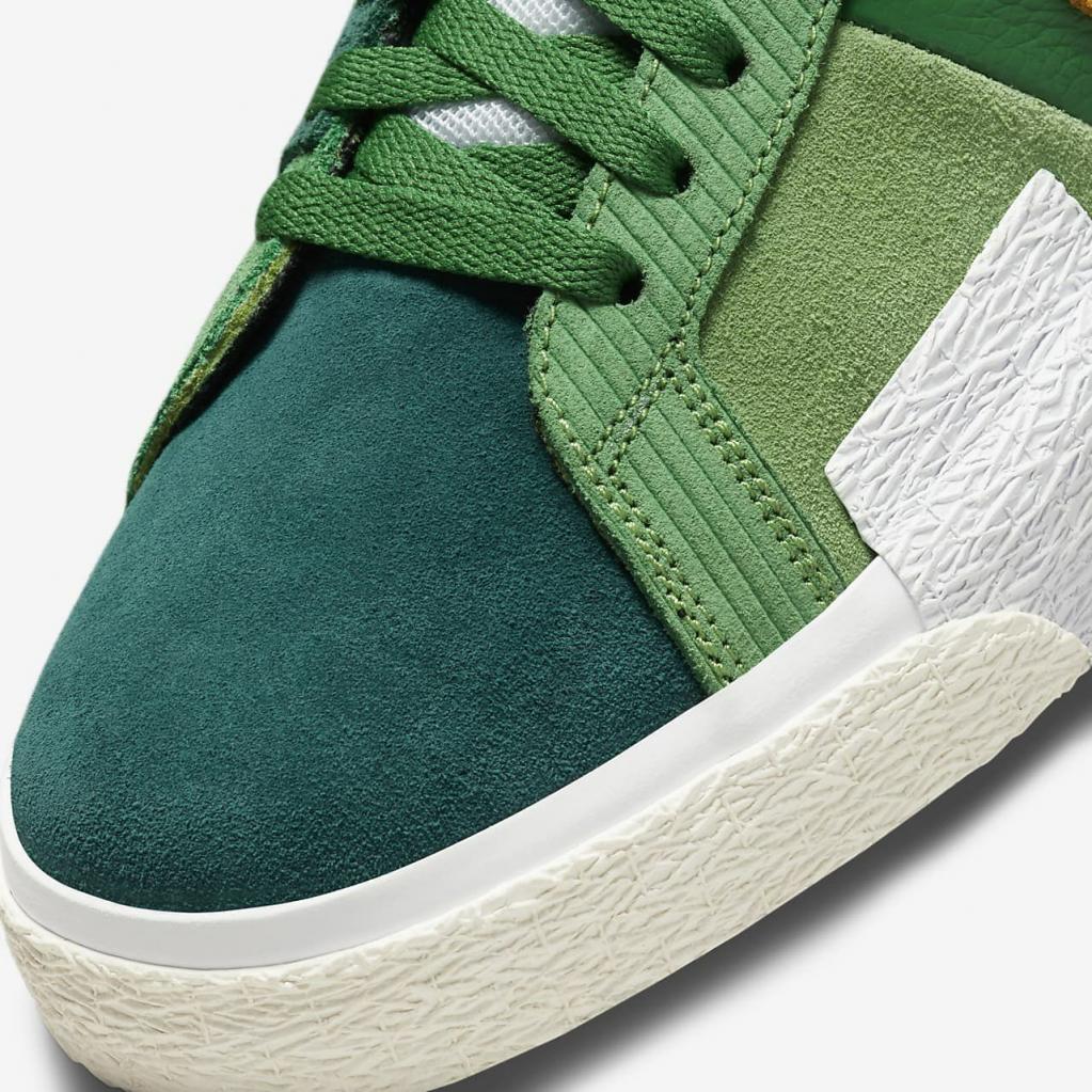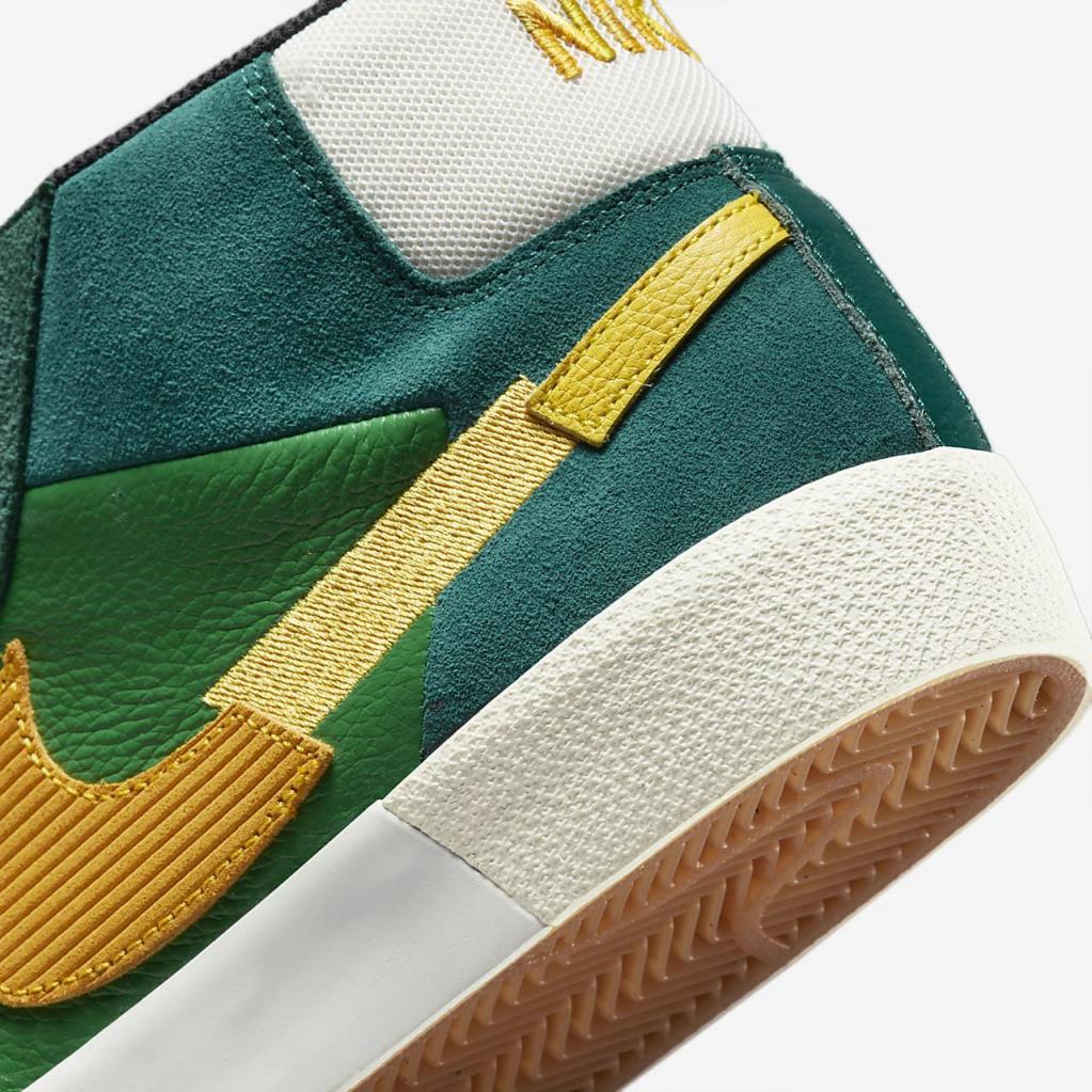 Nike SB Zoom Blazer Mid Premium, der er inspireret af Barcelonas kunstområder, er lavet af en collage af materialer som ruskind, læder og lærred.Designet er løftet med et flerfarvet "Nike"-broderi på hælen og en Swoosh, der er blevet skåret til med en sildebenssål i kontrastfarve.