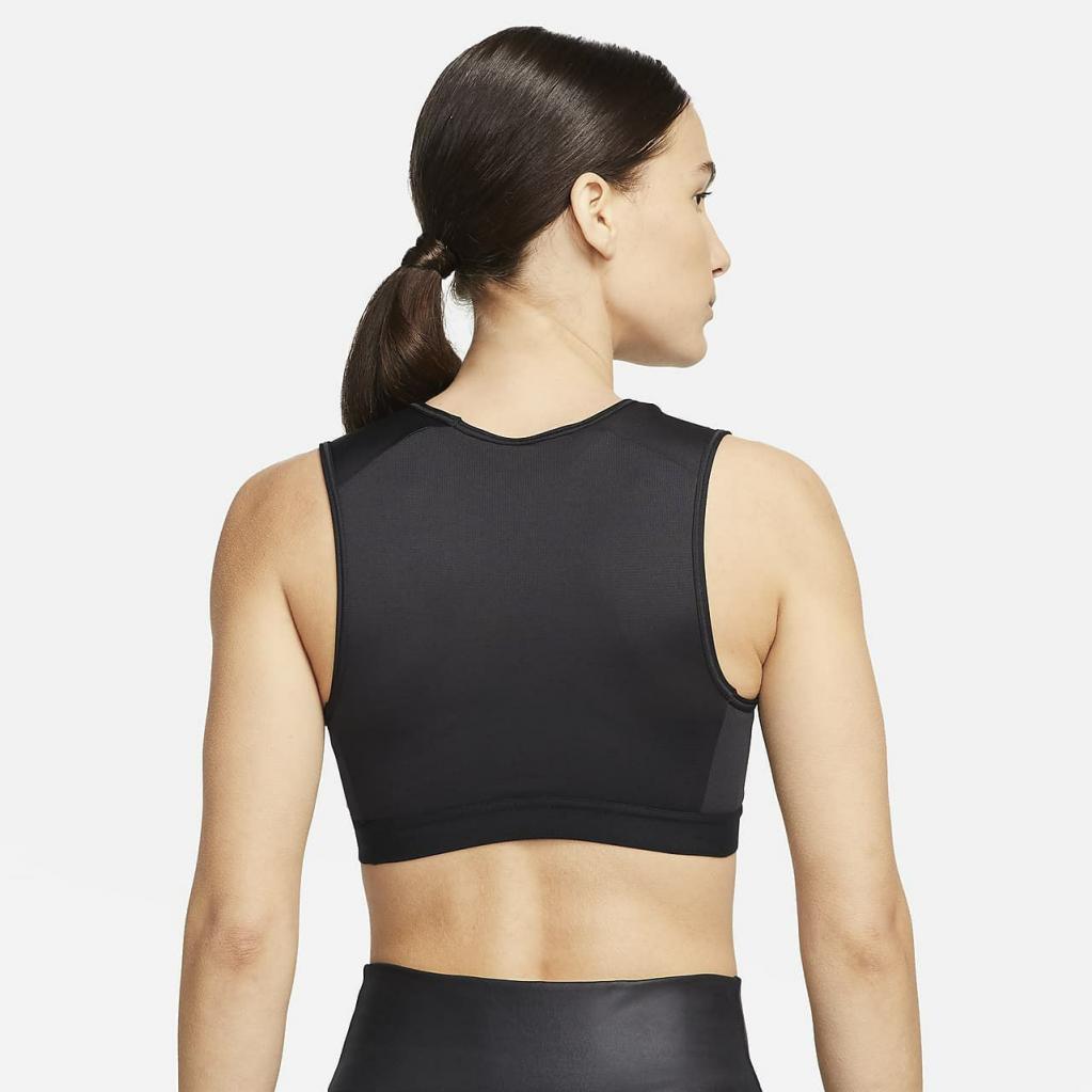 Med høj hals og brede stropper føles denne bh tætsiddende og sikker, når du bevæger dig på dine løbeture og dine aktive træningstimer. Blødt letvægtsmateriale transporterer sveden væk, så du kan holde dig tør, mens mesh-indlæg holder dig afkølet. For hvert stræk og hver stilling ved du, at du er støttet.