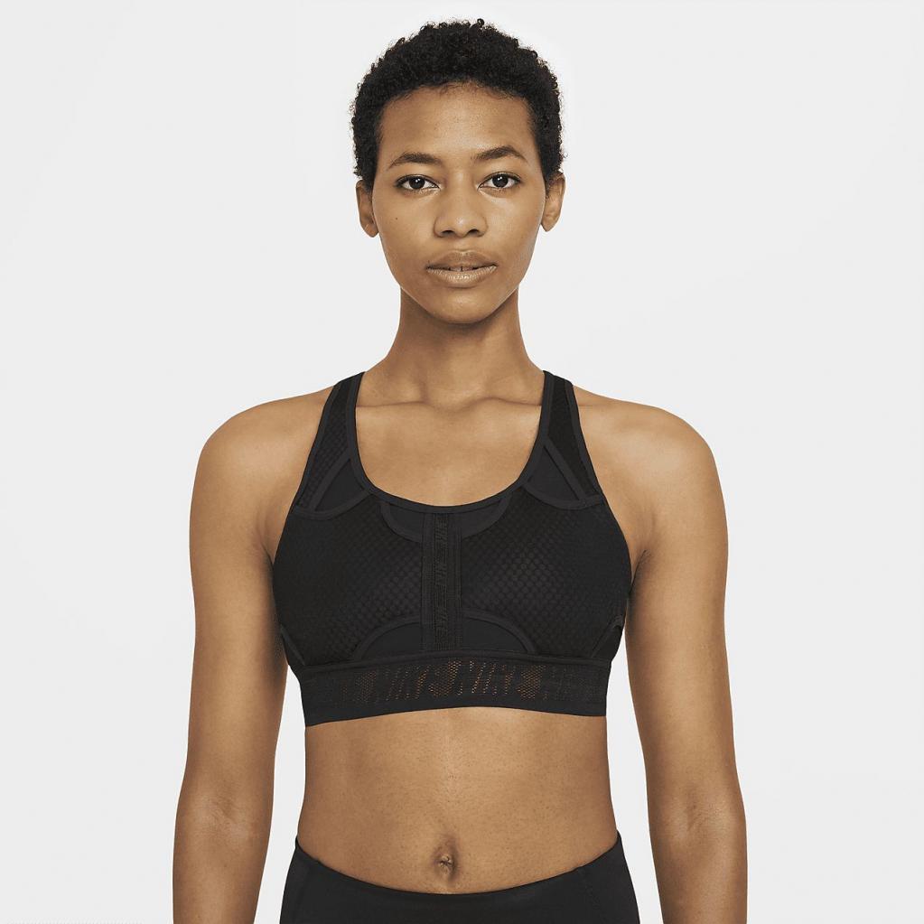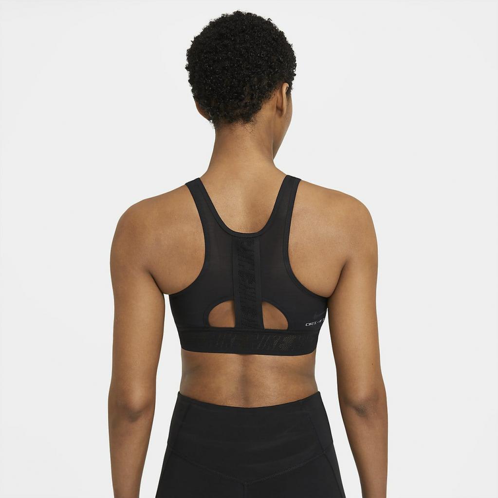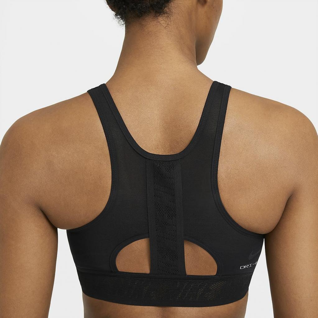 Elastik meshbånd hjælper med at holde sved væk i den nederste del af din bh.Nike-logoer tilføjer struktur for at forhindre, at den kryber op midt under træningen.