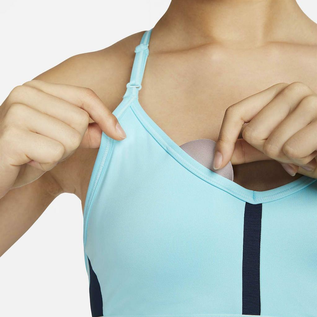 Nike Dri-FIT Indy-sports-bh’en gør enkel støtte endnu nemmere med stropper, der kan justeres foran. Blødt materiale designet til åndbarhed foran og bagpå, hvis du skulle komme til at svede. Med udtagelige indlæg, der sættes ind fra toppen, er det ubesværet og behageligt. Dette produkt er fremstillet med mindst 50% genanvendte polyesterfibre.