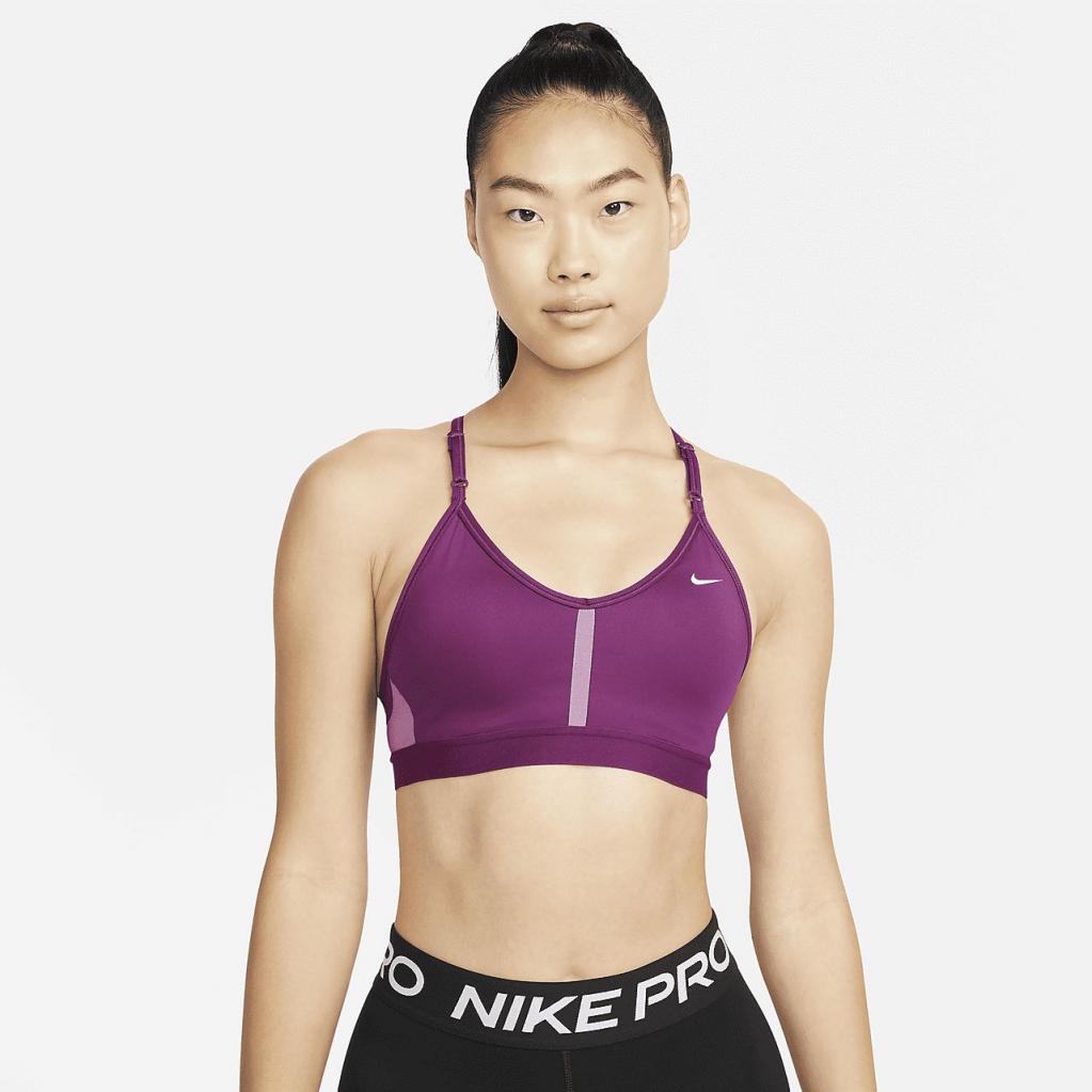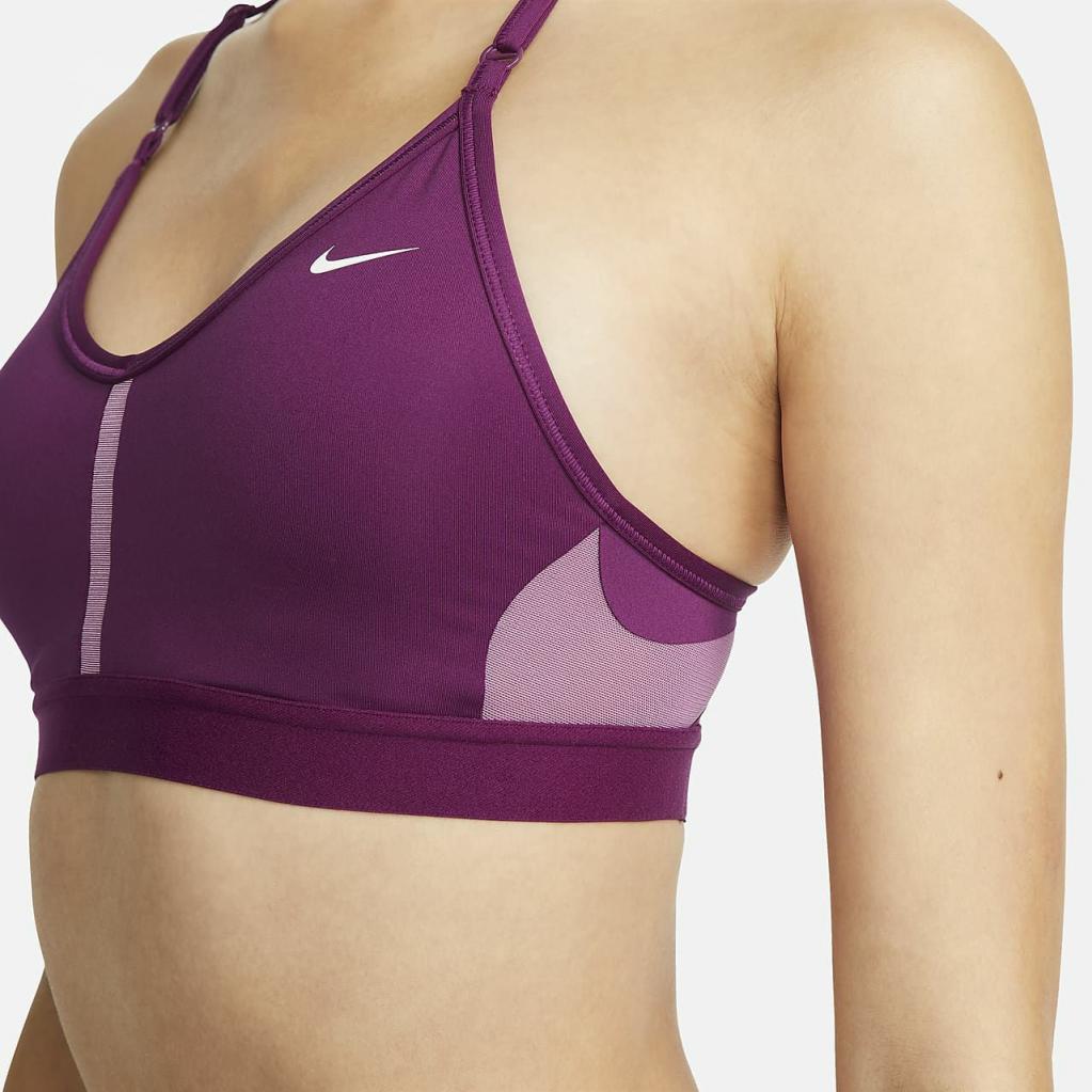 Nike Dri-FIT Indy-sports-bh’en gør enkel støtte endnu nemmere med stropper, der kan justeres foran. Blødt materiale designet til åndbarhed foran og bagpå, hvis du skulle komme til at svede. Med udtagelige indlæg, der sættes ind fra toppen, er det ubesværet og behageligt. Dette produkt er fremstillet med mindst 50% genanvendte polyesterfibre.