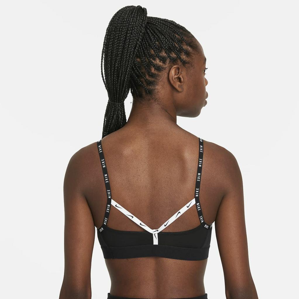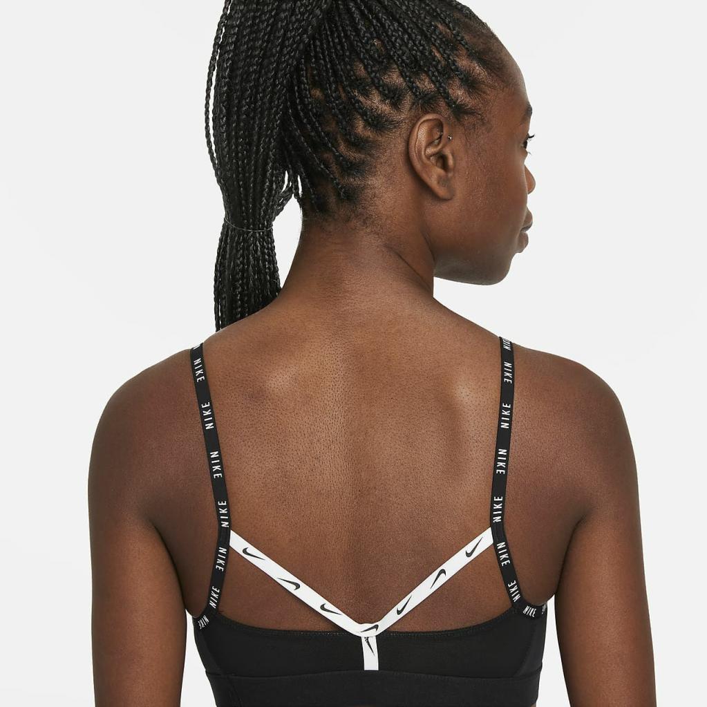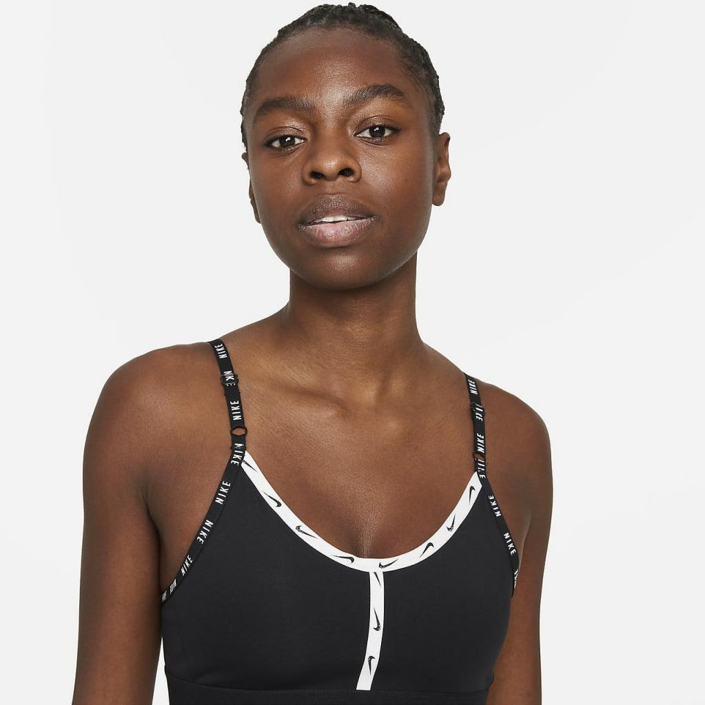 Nike Dri-FIT Indy-sports-bh fremhæver en let støttende silhuet med mærkede sømme, der giver kant til din træning.Det bløde letvægtsdesign (fremstillet med mindst 50 % genanvendte polyesterfibre) har tynde, justerbare stropper, der gør det nemt at finde din perfekte pasform.