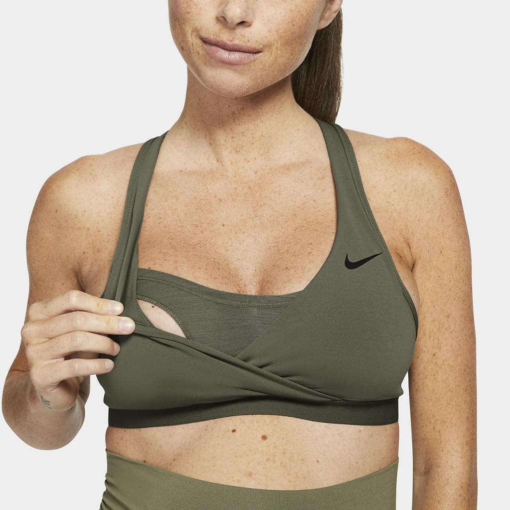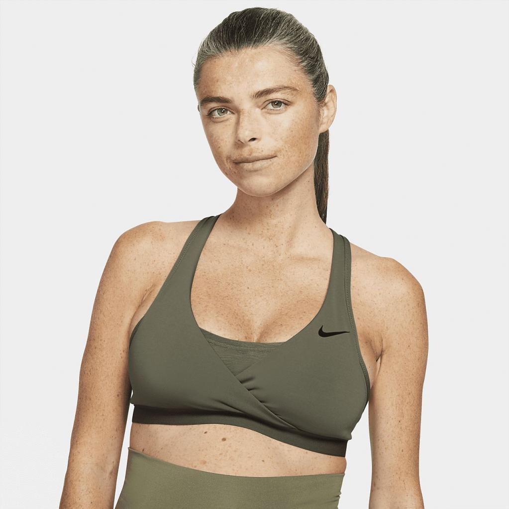 Sports-bh’er | Kvinder Nike Dri-FIT (M) Swoosh Medium Olive/Medium Olive/Hvid