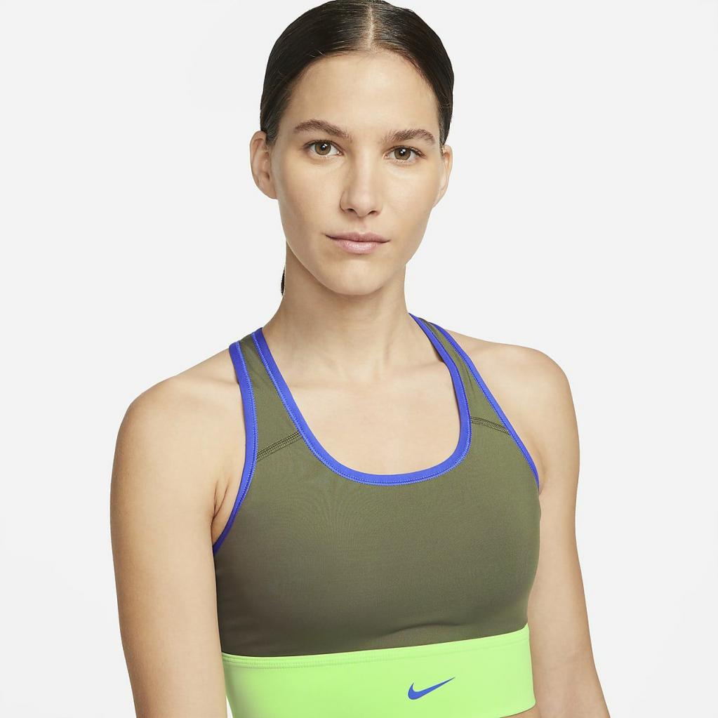 Sports-bh’er | Kvinder Nike Dri-FIT Swoosh Medium Olive/Lime Glow/Hyper Royal/Hyper Royal