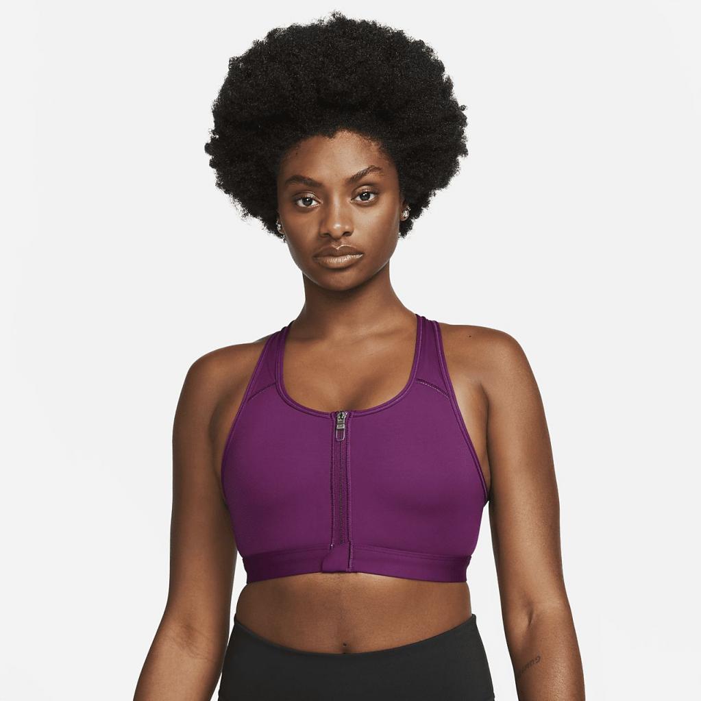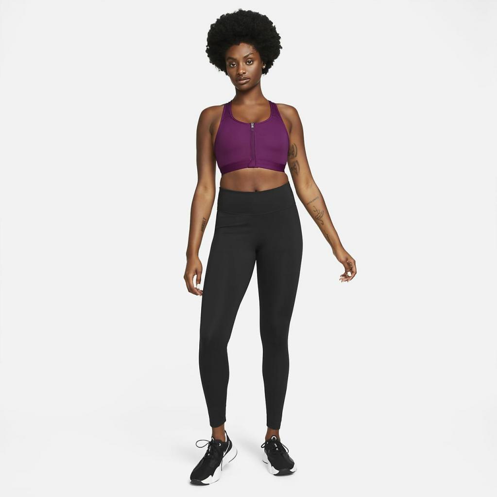 Start lavt, sats højt.Nike Dri-FIT Swoosh Zip-Front-sports-bh’en er det optimale lag til nærmest hvilken som helst træning og tager det klassiske design til et nyt niveau med materiale, der er fremstillet i mindst 75% genanvendte polyesterfibre.Den er nem at tage af og på, og den semi-automatiske låselynlås hjælper med at holde den på plads.Den hjælper holder dig afkølet med åndbart mesh bagpå.For hvert rep, skridt og hop ved du, at du har støtte.