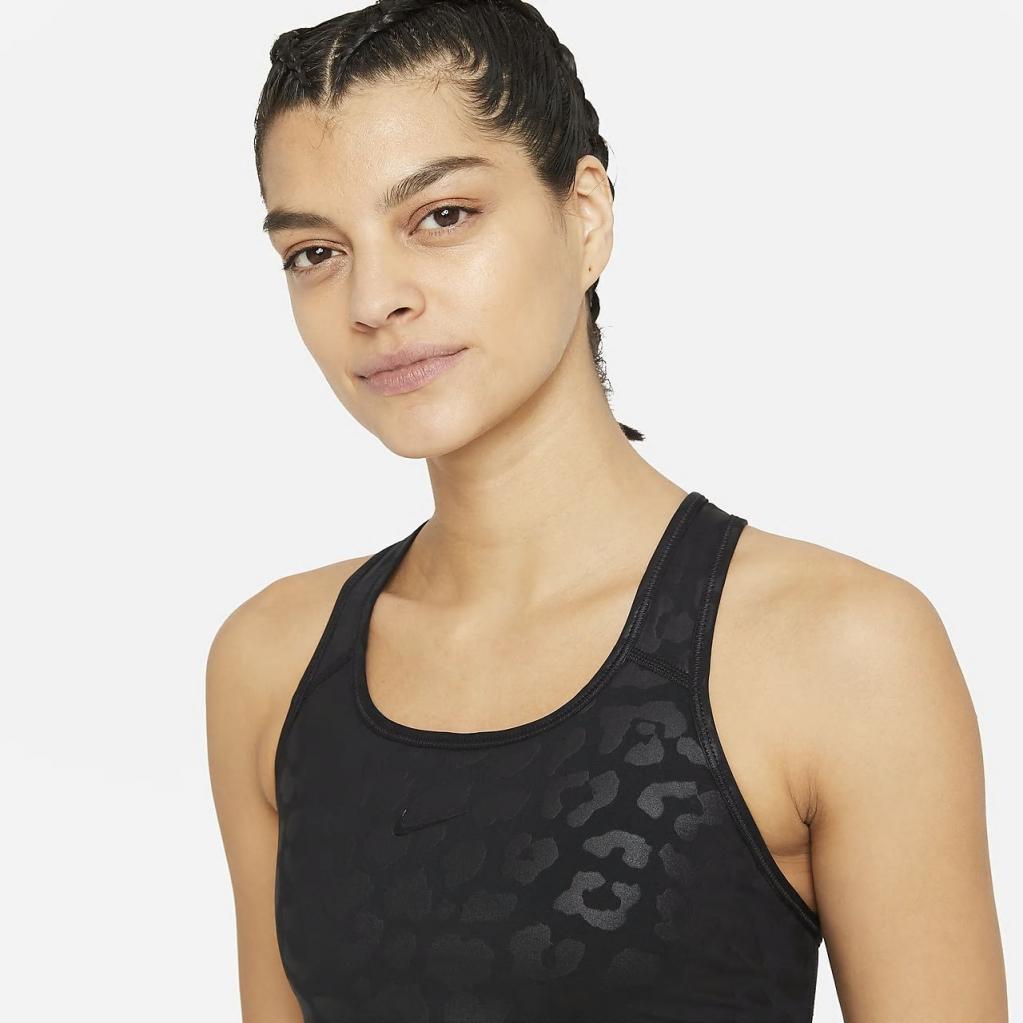 Bryderryg-designet hjælper dig med at bevæge dig frit, mens du træner eller konkurrerer.Et dyreprint på skinnende materiale giver et glimt af din vilde side.