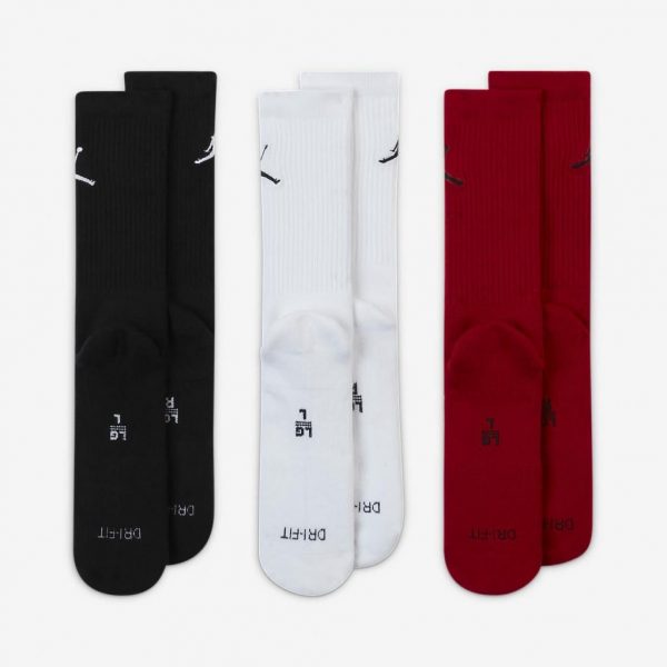 Jordan Everyday Max-crewstrømperne giver komfort på og uden for banen. De har svedtransporterende detaljer og svangstøtte, som giver en sikker pasform og fornemmelse.