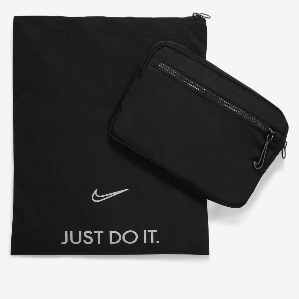 Let, rynket nylon har en vandafvisende overflade, der holder dine ting tørre. Metalliske Swoosh-detaljer som slidstærke lynlåsstropper.