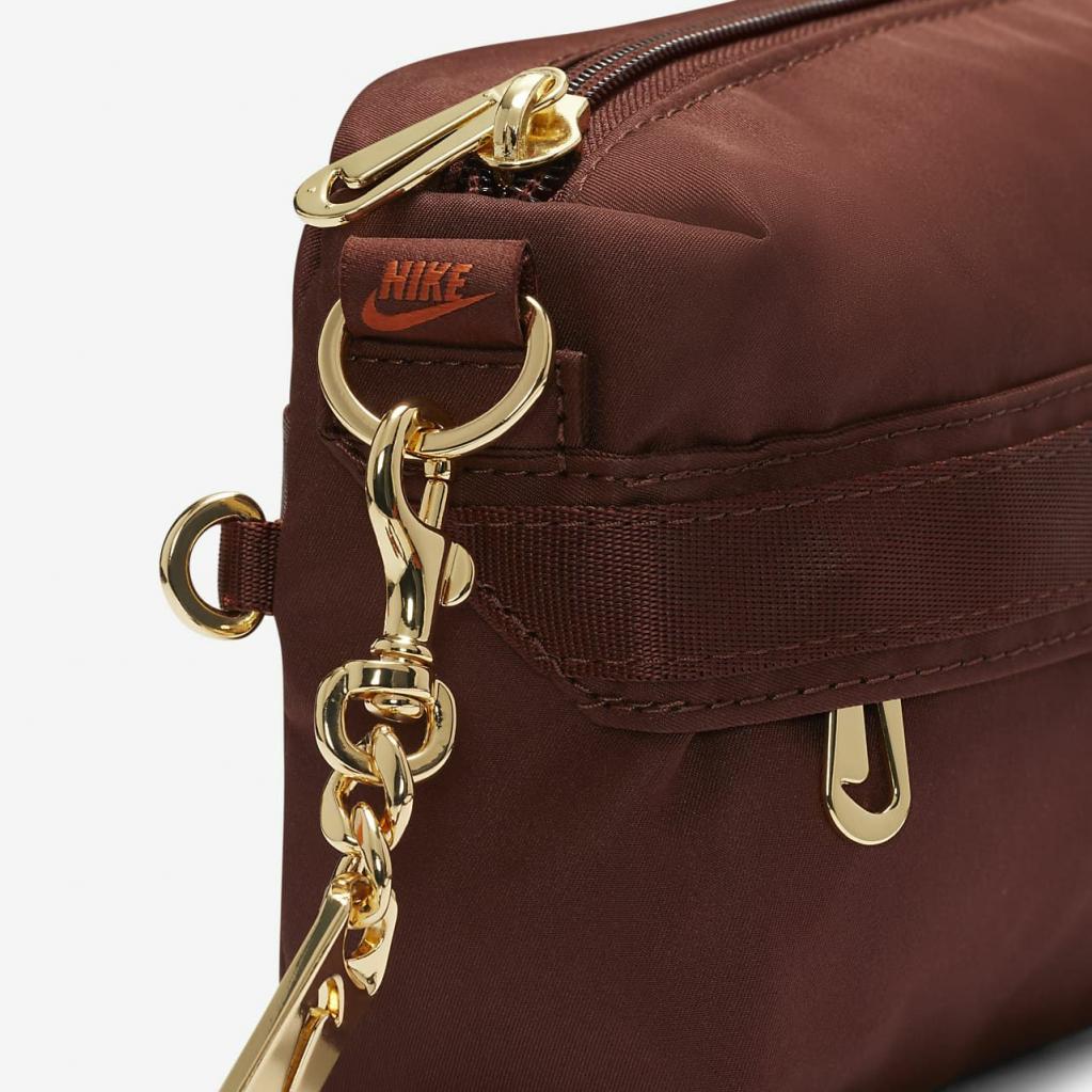 Poleret metal på bl.a. en elegant kæde, nøgleclips og lynlåse med Swoosh-udskæringer får ethvert outfit til at skinne.