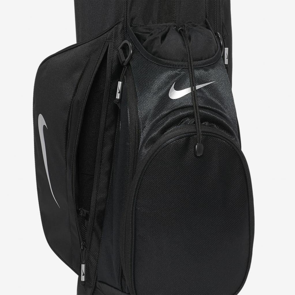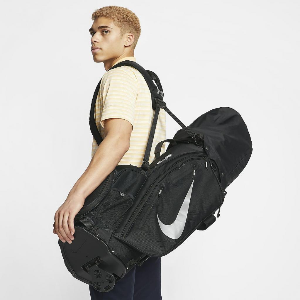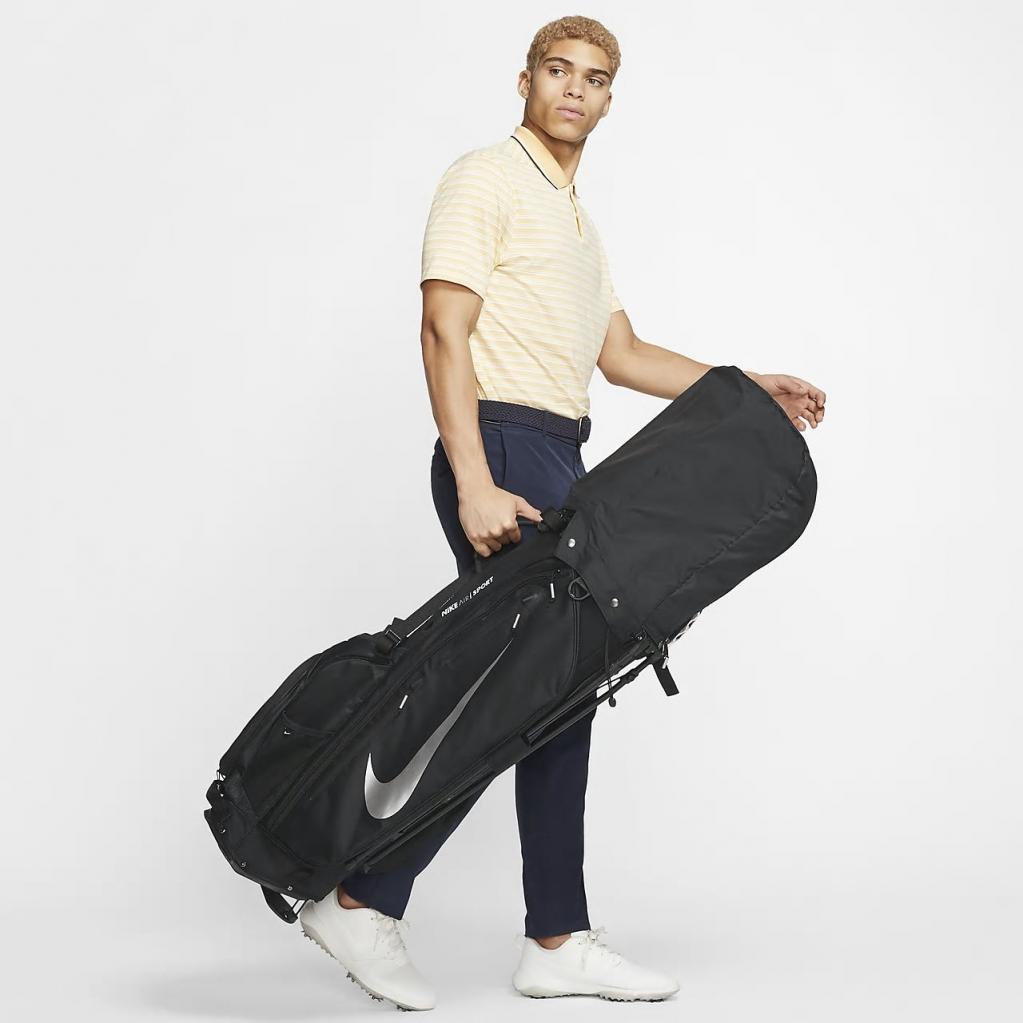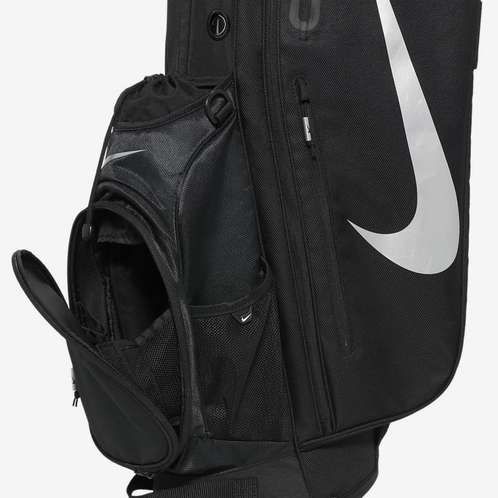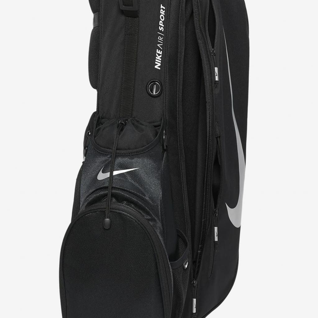 Nyd fairwayen og greenen med Nike Air Sport-golftasken. En anatomisk korrekt dobbeltrem giver en afbalanceret fornemmelse, så du komfortabelt kan spille alle 18 huller. Hvis vejret bliver vådt, holder en vandafvisende, fleeceforet lomme dine værdigenstande sikre og tørre, og en hætte beskytter dig mod regnen.
