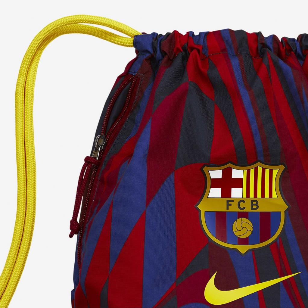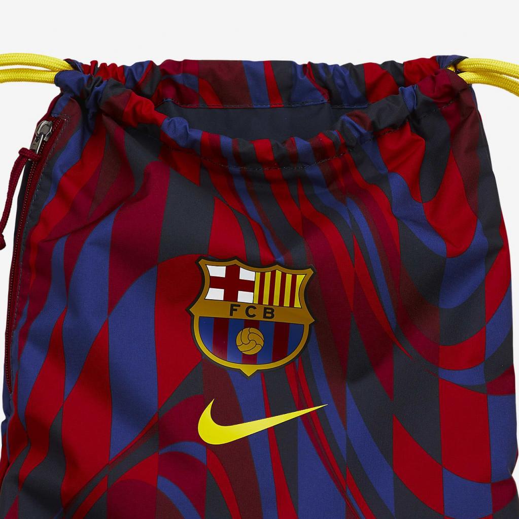 FC Barcelona Stadium-gymnastikposen har et letvægtsdesign med en snoretrækslukning, så du hurtigt kan få adgang til dine ejendele, når du er på farten. En lynlåslomme i siden giver dig mulighed for at holde mindre ting adskilt.
