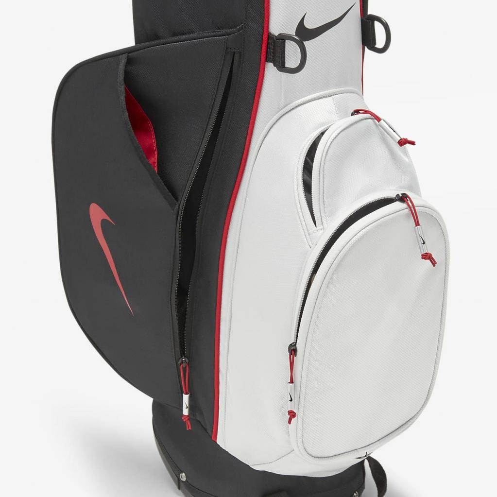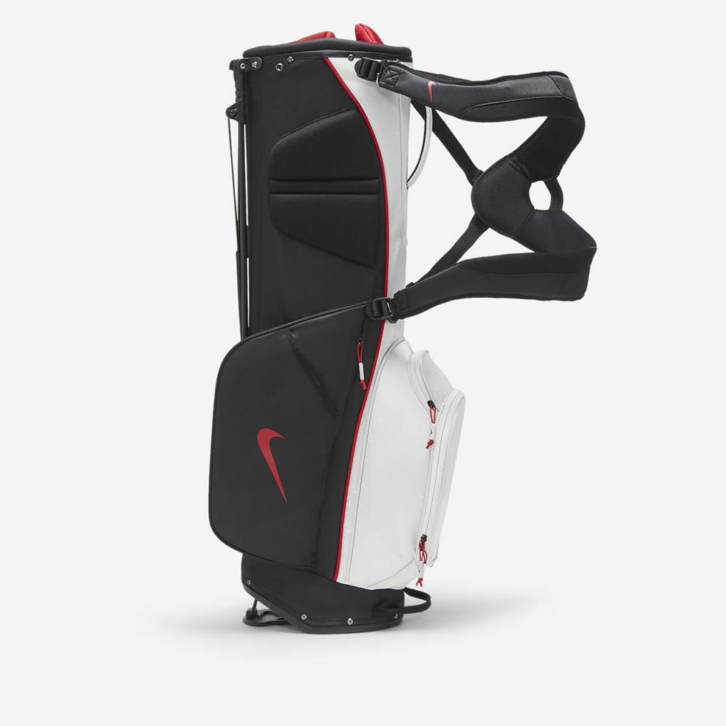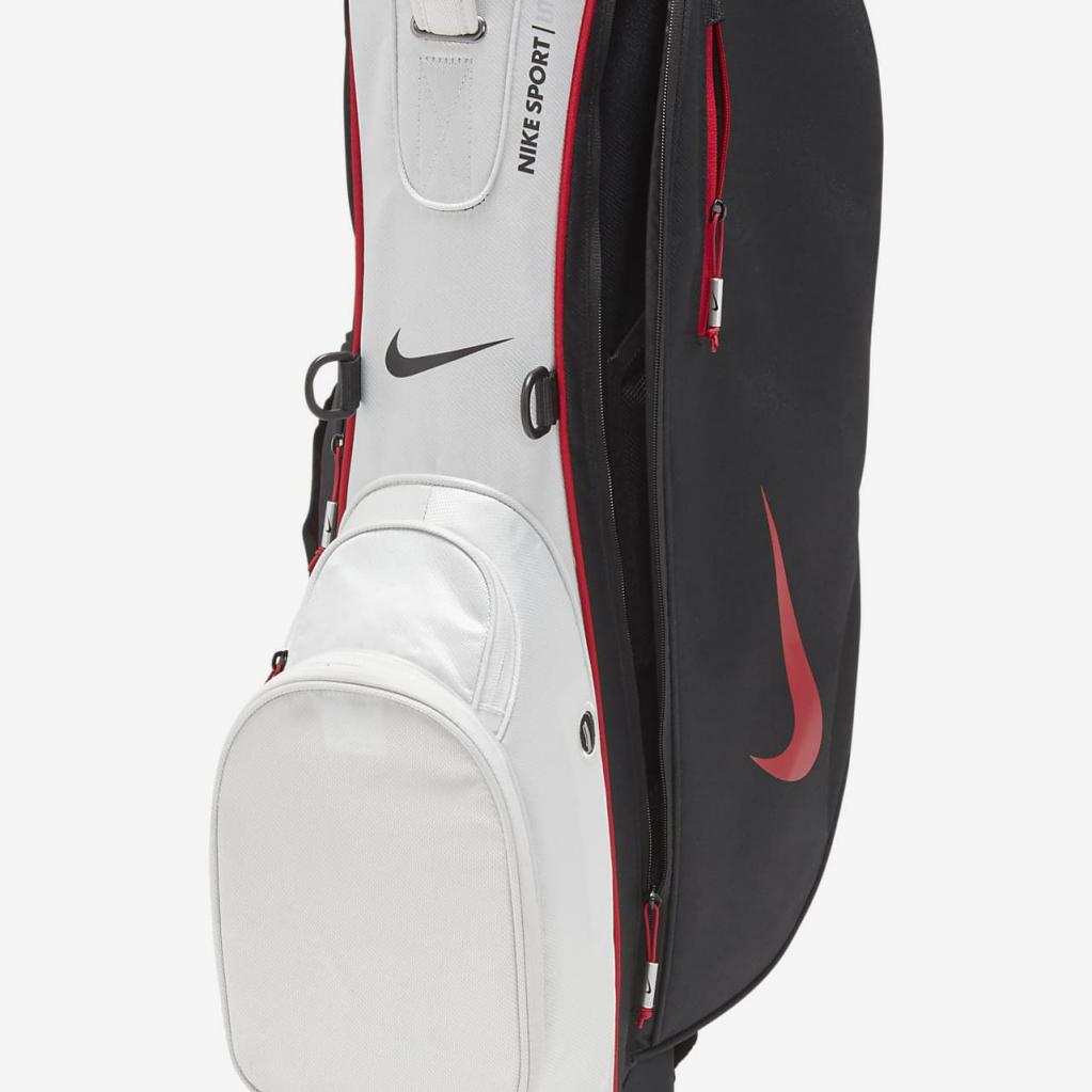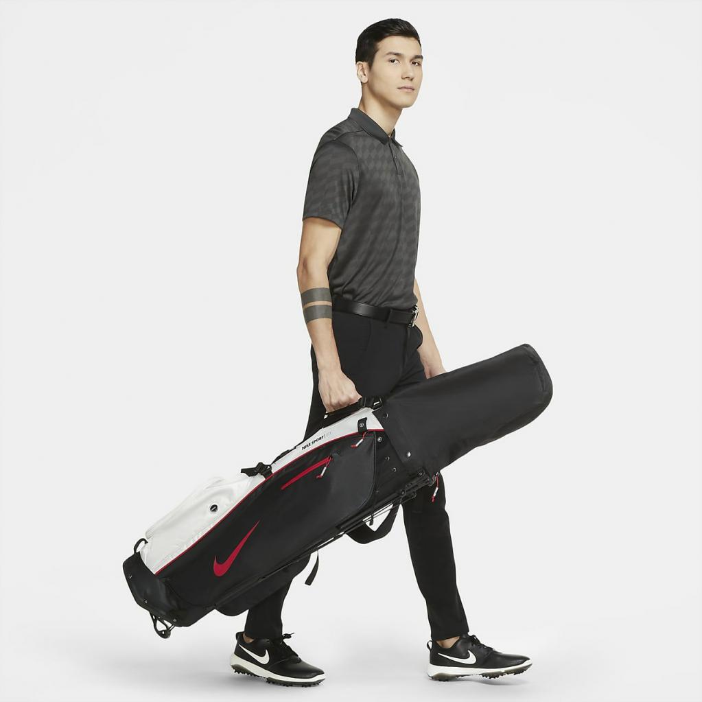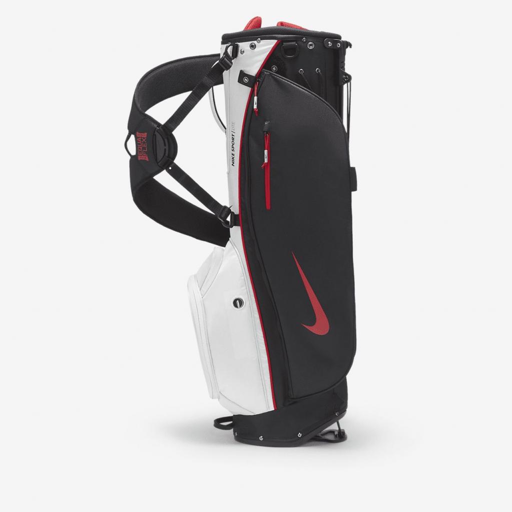 Indtag greenen med Nike Sport Lite-golftasken. Den anatomisk korrekte Nike Equaflex-dobbeltrem giver en afbalanceret fornemmelse, så du kan spille alle 18 huller i høj komfort. Hvis vejret bliver vådt, holder en vandafvisende, fleeceforet lomme dine værdigenstande sikre og tørre, og en hætte beskytter dig mod regnen.