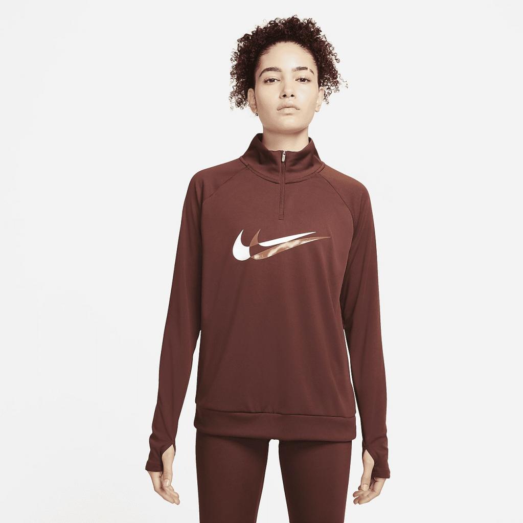 Løb dine kilometer i en let favorit.Nike Dri-FIT Swoosh Run-mellemlaget har et design med lynlås i kvart længde, så du kan styre luftcirkulationen, mens huller til tommelfingrene ved ærmerne hjælper med at udvide dækningen.Et Swoosh-design med skygge på brystet hylder det ikoniske logo og de løbere, der stolt bærer det.