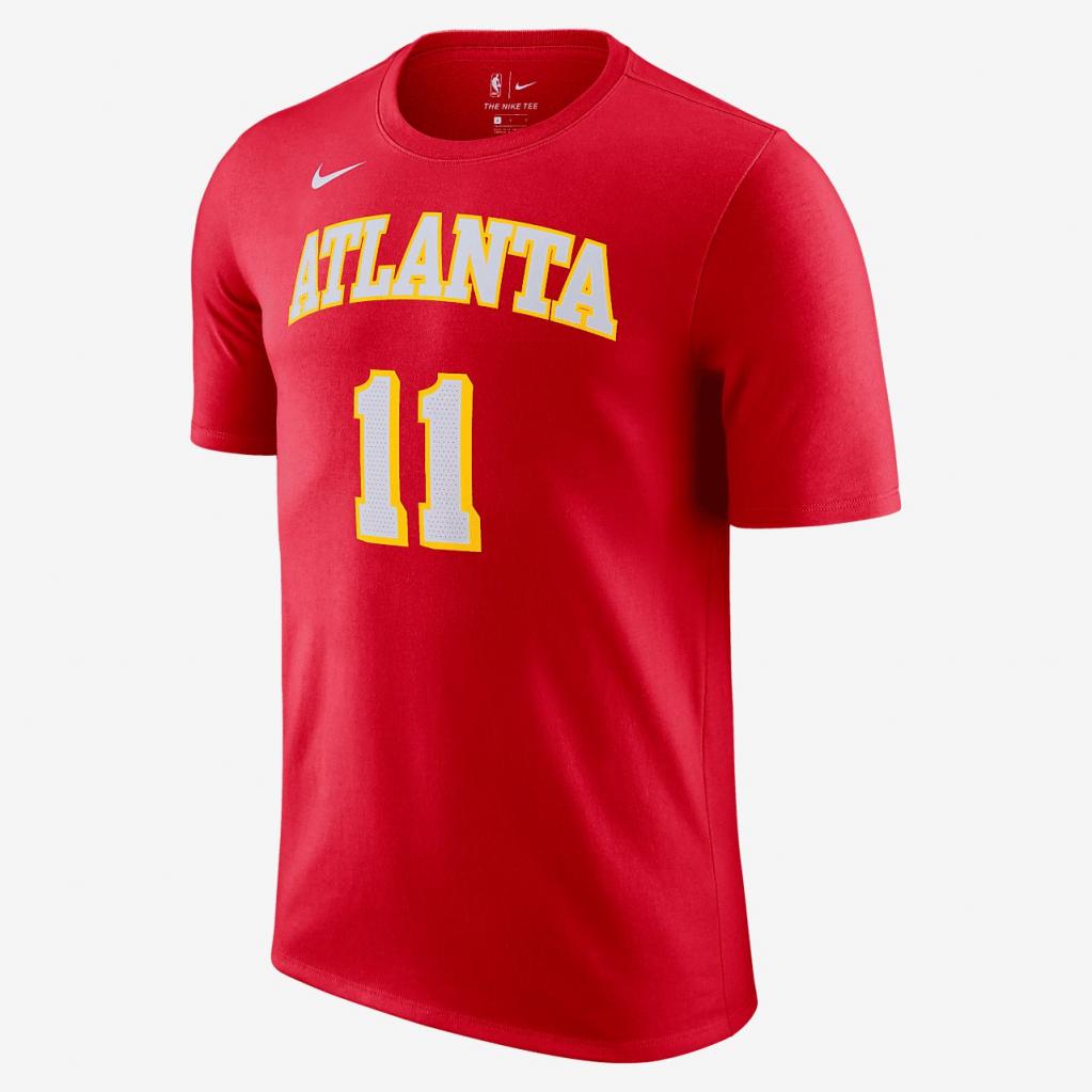 Repræsenter din yndlingsspiller i Atlanta Hawks Nike NBA-T-shirten, som er en let bomuldstrøje med rund hals og markant grafik med navn og nummer.