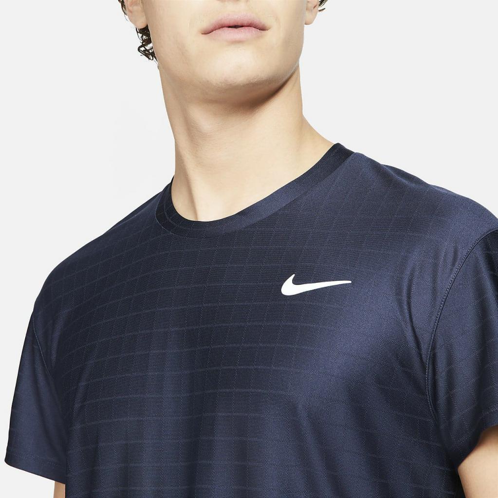 Træk vejret nemt i NikeCourt Dri-FIT Advantage-trøjen.Det svedtransporterende materiale, der er diskret ternet, lader varme slippe ud, så du kan holde dig afkølet, når kampen bliver intens.Dette produkt er fremstillet af 100% genanvendte polyesterfibre.