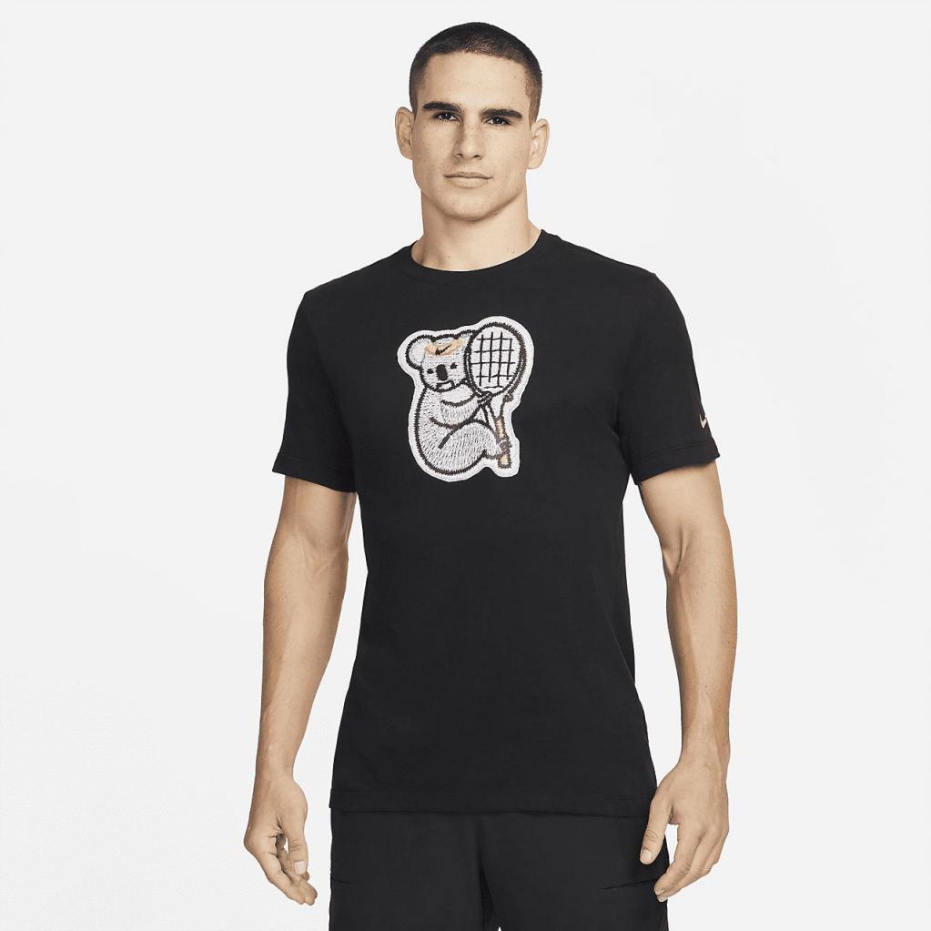 NikeCourt Dri-FIT-T-shirten er en blød, svedtransporterende klassiker med en koala, der holder en tennisketcher på forsiden.