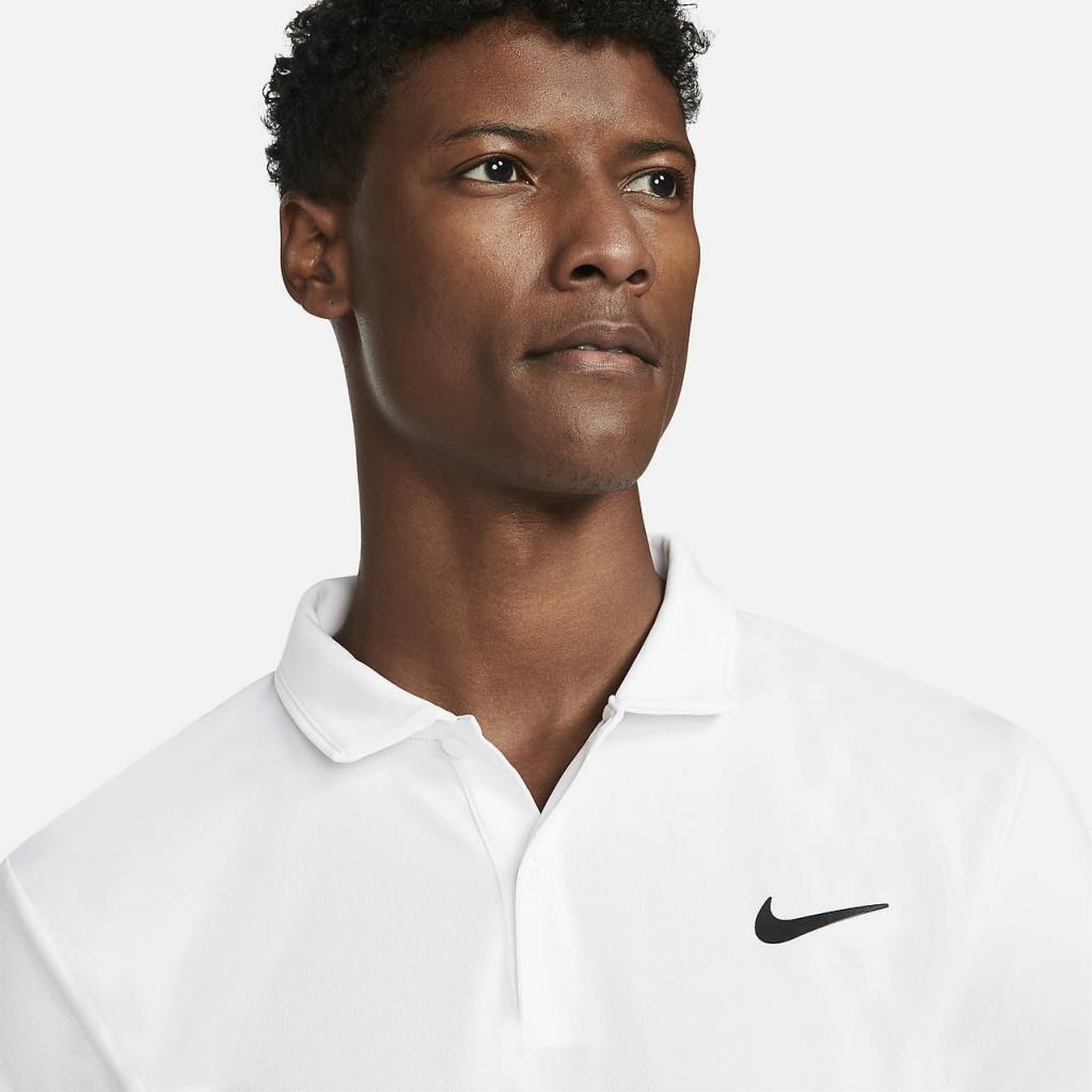 Bevæg dig frit i NikeCourt Dri-FIT Victory-polotrøjen.Dens bløde, strækbare materiale transporterer sved væk og holder dig tør på og uden for banen.Dette produkt er fremstillet af 100% genanvendte polyesterfibre.