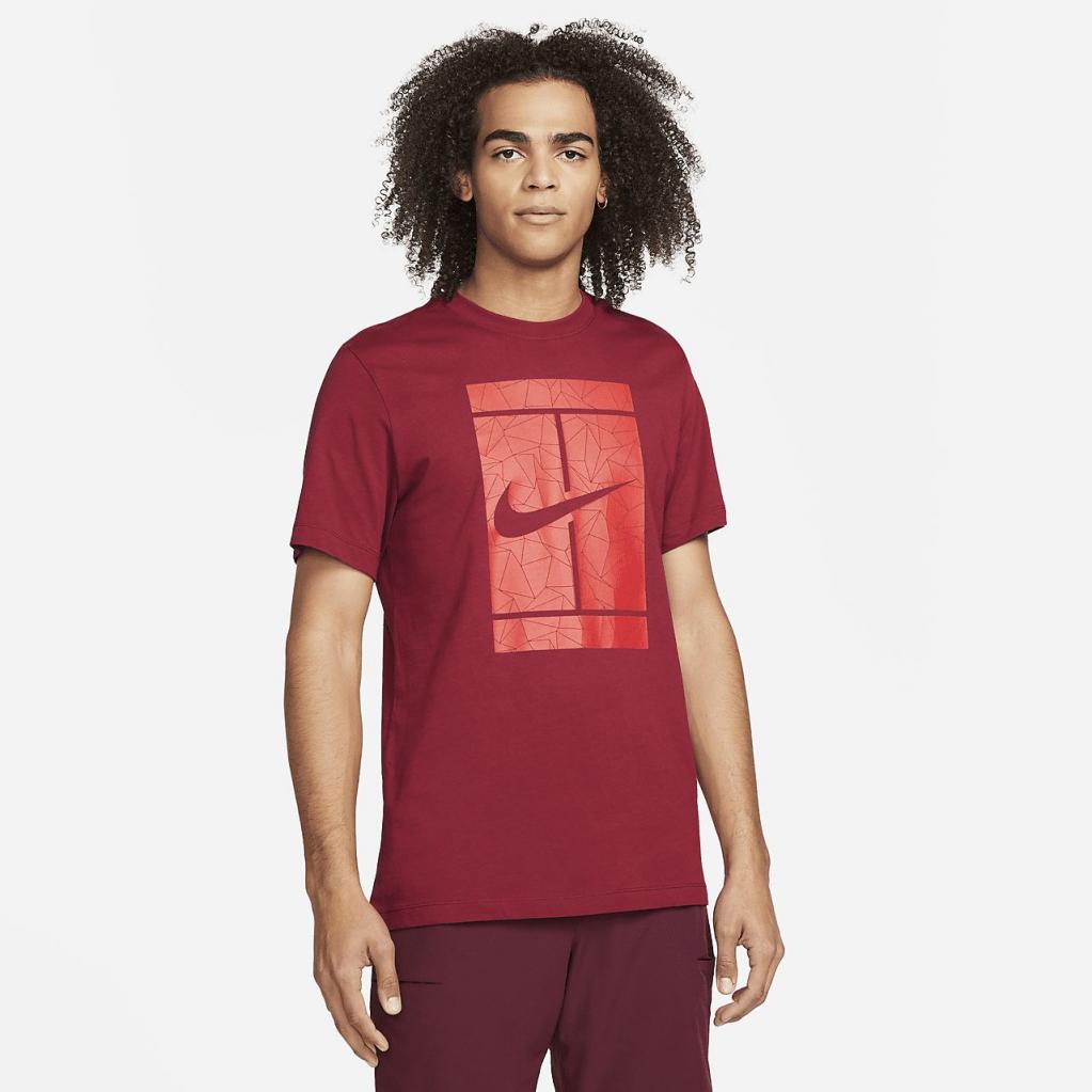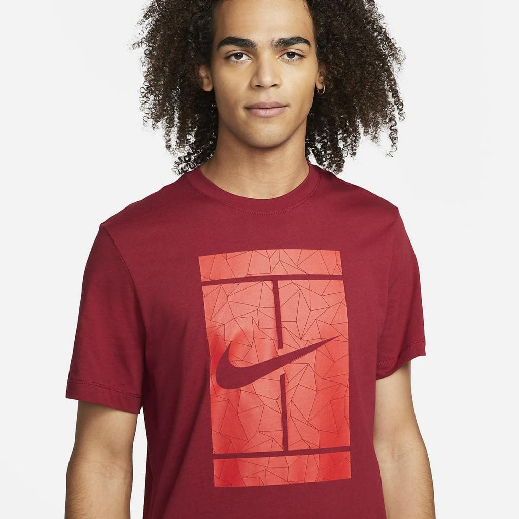 NikeCourt-T-shirten løfter en behagelig bomulds-musthave med et overdimensioneret NikeCourt-logo. Den markante, kantede grafik på indersiden af logoet er inspireret af banens geometriske linjer.