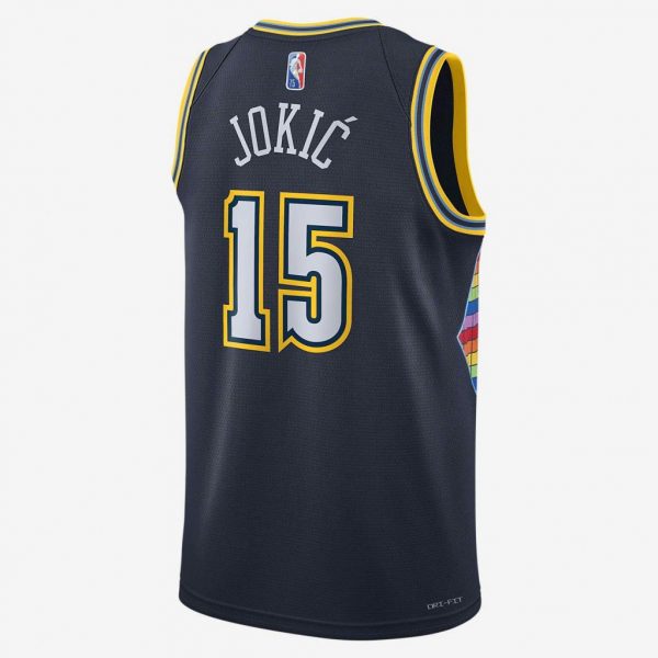 Hver NBA-franchise har en spilleliste med dens største hits – en samling af ikoniske øjeblikke fra fortiden, der fortæller holdets definitive historie. 2021-22 Denver Nuggets City Edition Swingman-trøjen blander elementer fra en række forskellige uniformer, der altid er knyttet til holdets historie, såsom spilleruniformen fra 1975-76, hvor de var de bedste. Detaljer inspireret af ’83, ’94 og ’09 fremhæver nogle af holdets store sejre. Dette produkt er fremstillet af 100% genanvendte polyesterfibre.