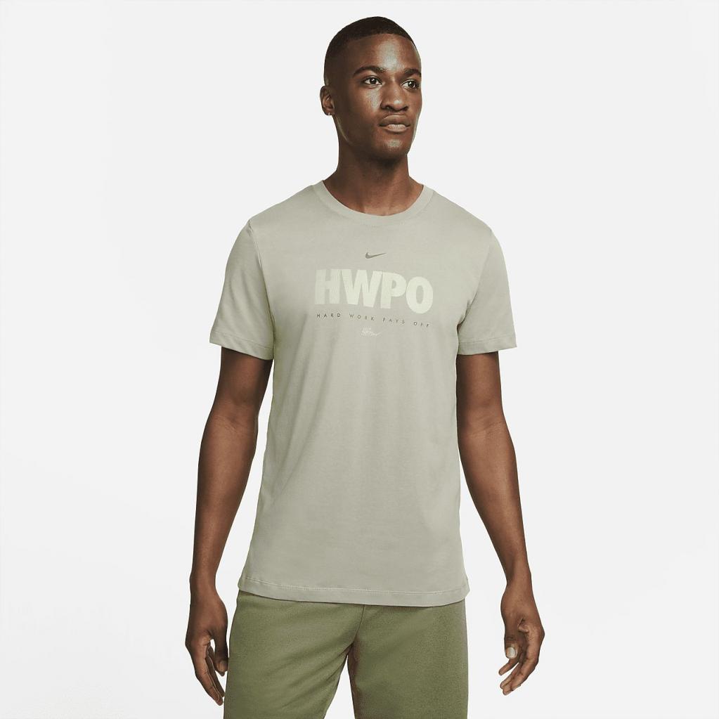 Nike Dri-FIT "HWPO"-T-shirten hylder den 5-dobbelte vinder af "Verdens mest veltrænede mand", Mat Fraser, og hans træningsmentalitet med signaturgrafik på blødt, svedtransporterende materiale.