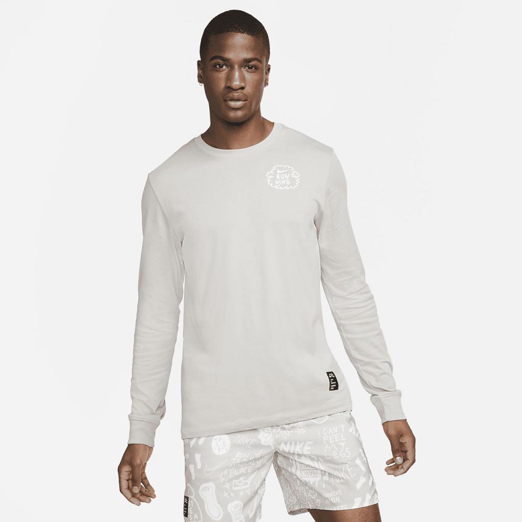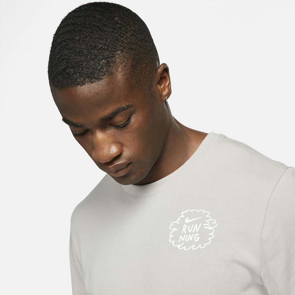 Nike Dri-FIT Nathan Bell-T-shirten er en del af et samarbejde med kunstneren Nathan Bell, der hylder løb som en konkurrence med dig selv. Den kombinerer svedtransporterende materiale med håndtegnet grafik.
