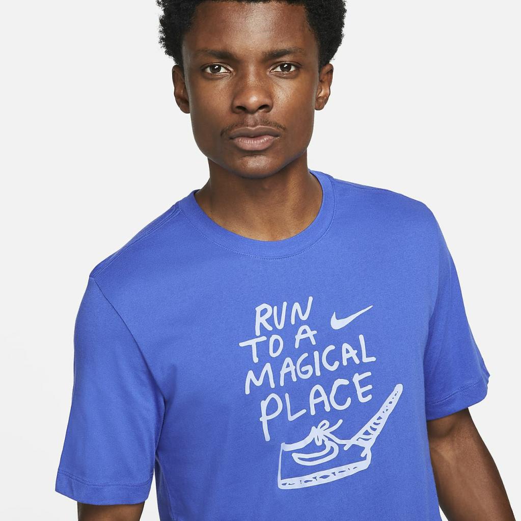 Nike Dri-FIT Nathan Bell T-shirten er en del af et samarbejde med kunstneren Nathan Bell, som hylder løb som en konkurrence med dig selv. Den kombinerer svedtransporterende materiale med håndtegnet grafik, der inspirerer dig til din løberute.