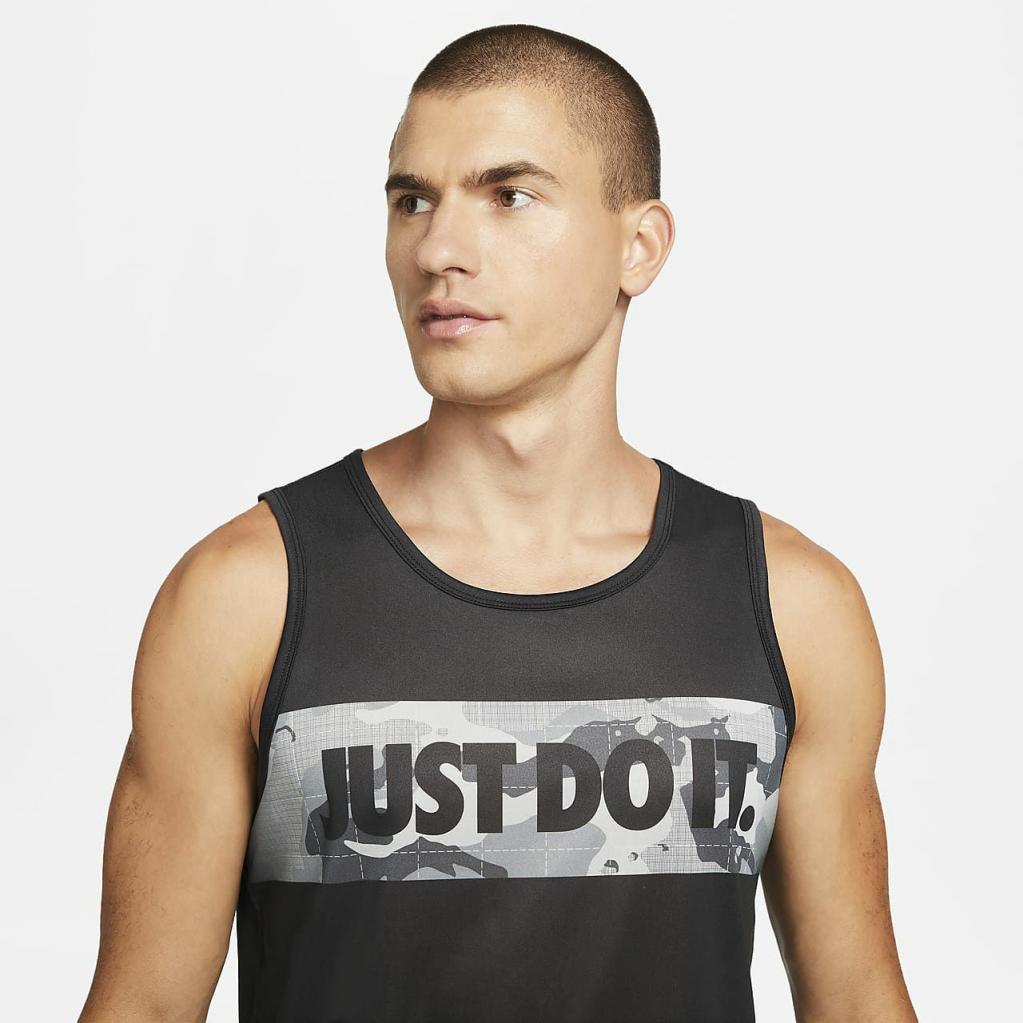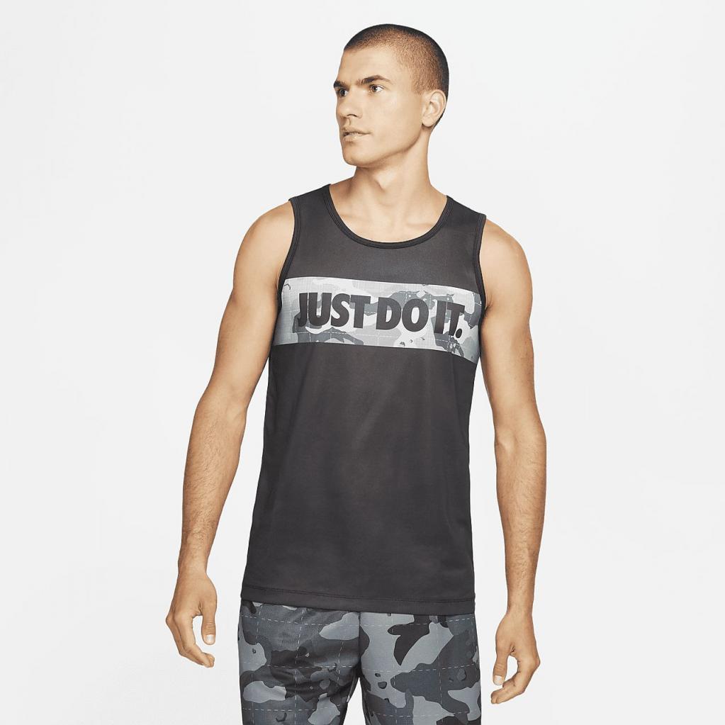 Nike Dri-FIT-T-shirten holder dig tør og veltilpas fra opvarmning til nedkøling med letvægtsmateriale, der transporterer sveden væk. Anti-lugt-finish hjælper med at holde tanktoppen frisk.