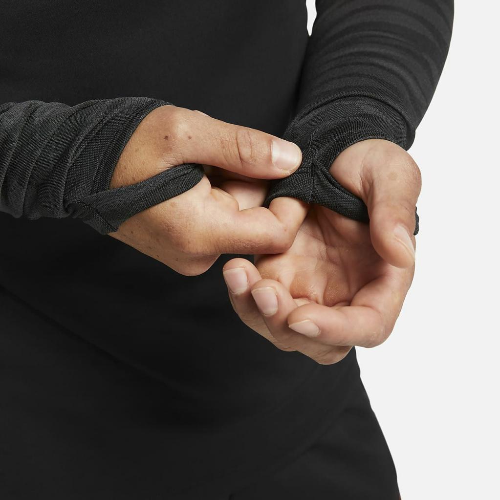 Nike Dri-FIT Strike-træningstrøjen er fremstillet i strækbart, svedtransporterende materiale, der holder dig komfortabel og tør, når du træner dine færdigheder. Designet med 1/4 lynlås har en strømlinet pasform med skjulte huller til tommelfingrene, der hjælper med at reducere distraktioner.