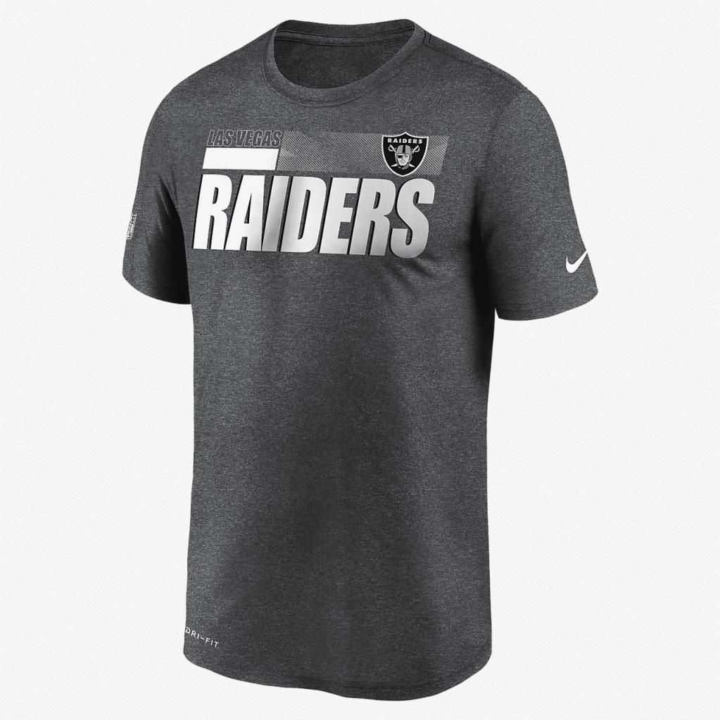 Nike Dri-FIT Team Name Legend Sideline (NFL Las Vegas Raiders)-T-shirten benytter svedtransporterende teknologi, der hjælper med at holde dig tør og godt tilpas på kampdagen.