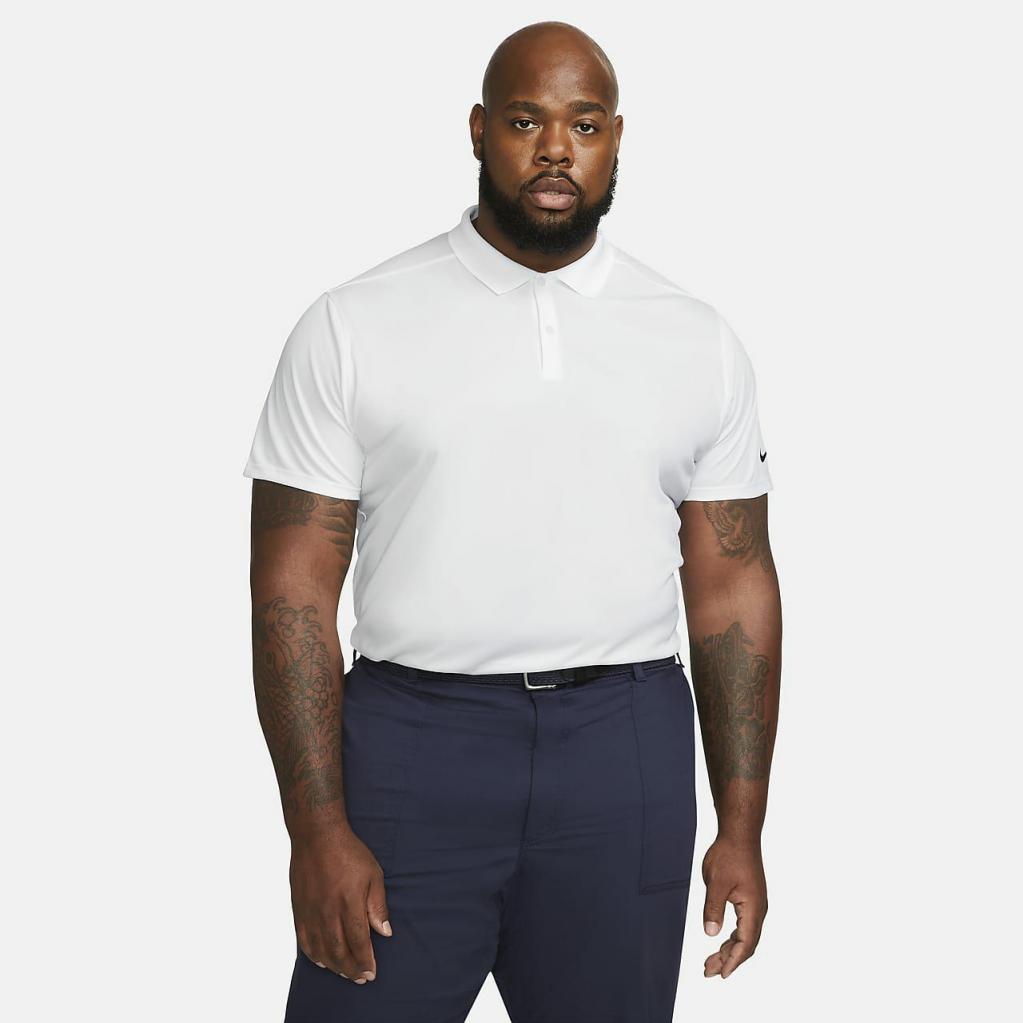 Nike Dri-FIT Victory-poloen har et klassisk look og en blød fornemmelse. Genbrugspolyester med svedtransporterende teknologi hjælper med at holde dig tør, når din runde på banen bliver intens. Dette produkt er fremstillet af 100% genbrugte polyesterfibre.