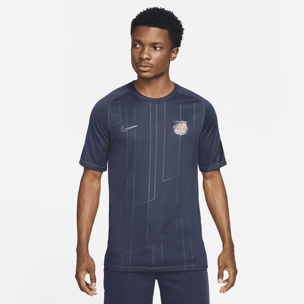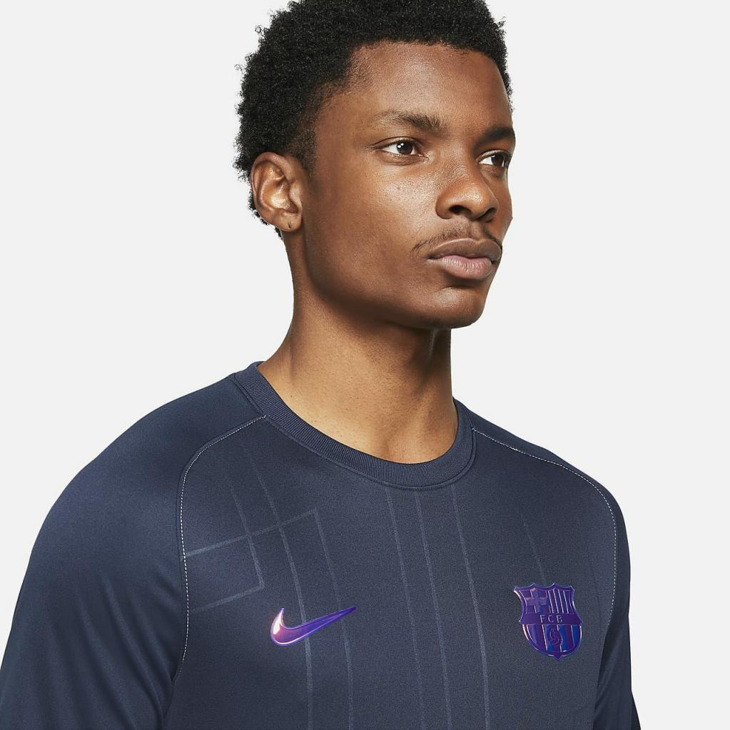 FC Barcelona-overdelen giver dig det samme look som dine yndlingsspillere.Svedtransporterende materiale er let og åndbart for at hjælpe med at holde dig afkølet, mens du varmer op til kampen.