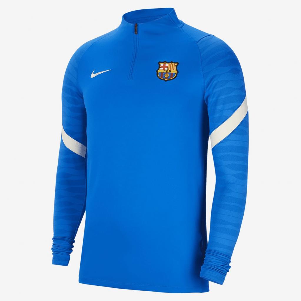 FC Barcelona Strike Drill-trøjen har designdetaljer, der er skræddersyede til fodboldens kommende stjerner.En slank, strømlinet pasform sikrer, at intet kommer imellem dig og bolden, og svedtransporterende materiale hjælper med at holde dig afkølet og fattet, mens du skærper dine evner.