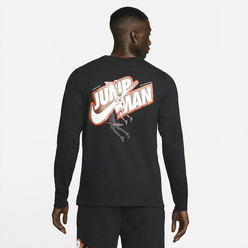 Denne Jordan Jumpman-T-shirt er fremstillet i blød, behagelig bomuld med en let og afslappet pasform.Grafik foran og bagpå kombinerer printet skrift med et fotorealistisk digitalt print af Michael Jordan fra Kamp 4 fra mesterskabet i 1998.