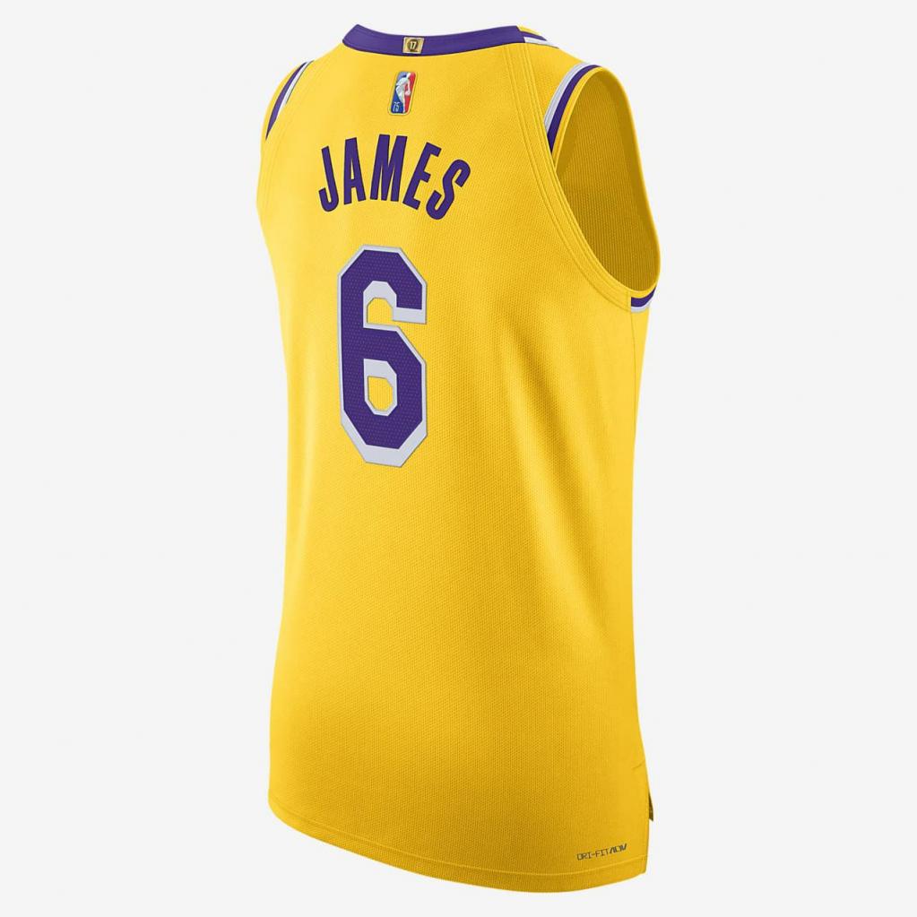 Hvert hold har deres farver, hvilket giver en umiskendelig identitet, der skiller dem ud fra resten af ligaen.I år lader Los Angeles Lakers Icon Edition Nike NBA Authentic-trøjen dig hylde ligaens 75 års jubilæum med et særligt logomærke og formstøbte logoer, der er inspireret af prismatiske, fint slebne diamanter.Dette produkt er fremstillet af 100% genanvendte polyesterfibre.